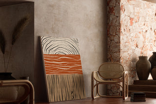 Målning Färgglad – Sol av Lera | Affisch Styliserat Landskap i Terrakotta och Naturliga Toner | Bohemisk Dekoration för Vardagsrum eller Sovrum