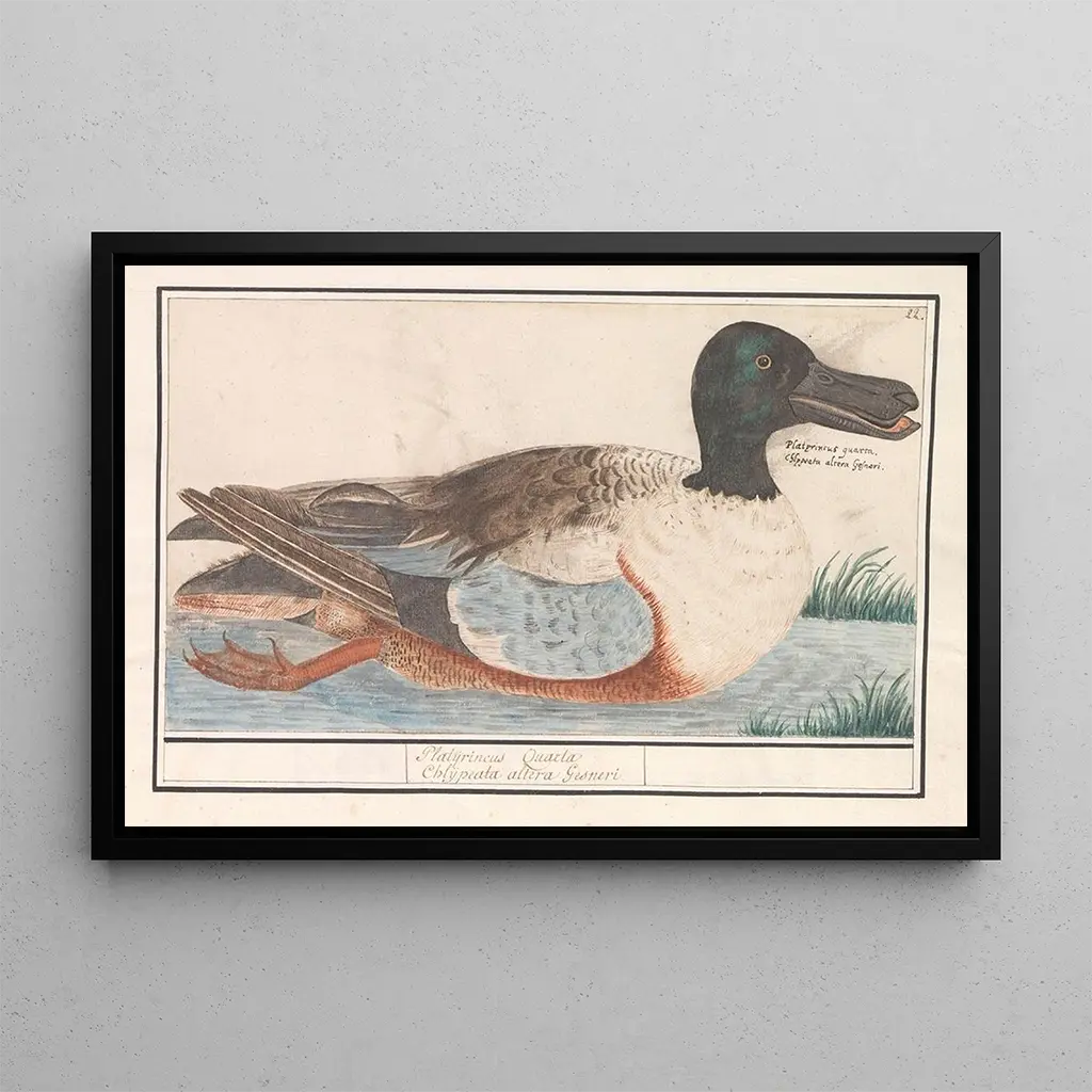 Canard souchet Anas clypeata : en naturlig elegans vid vattnet Konsttryck av "Canard souchet Anas clypeata" av Anselmus Botius de Boodt är en verklig hyllning till fågelvärldens skönhet. Detta konsttryck, rikt på detaljer, fångar elegansen hos denna and med distinkt fjäderdräkt. De delikata nyanser av grönt och brunt blandas harmoniskt, medan den vattenfyllda bakgrunden skildrar en lugn naturlig miljö. Precisionen i linjerna och finheten i texturerna skapar en levande, nästan påtaglig atmosfär, som inbjuder betraktaren att beundra denna fågels grace. Detta konsttryck är ett perfekt exempel på hur konst kan hylla fauna och flora. Anselmus Botius de Boodt : en blick på naturen under 1600-talet Anselmus Botius de Boodt, flamländsk konstnär från 1600-talet, är känd för sina noggranna avbildningar av djur och växter. Hans arbete ingår i en naturalistisk tradition, där noggrann observation av naturen är avgörande. Påverkad av de vetenskapliga framstegen under sin tid, lyckades han förena konst och vetenskap, och fånga skönheten hos arter med en anmärkningsvärt rigorös metod. Hans verk, ofta beställda av samlare, vittnar om vikten av att avbilda naturen i renässansens konst, och "Canard souchet" är ett utmärkt exempel. En dekorativ samling med många fördelar Konsttrycket av "Canard souchet Anas clypeata" är ett dekorativt föremål som kan berika ditt hem, oavsett om det är i ett kontor, ett vardagsrum eller ett sovrum. Dess utskriftskvalitet garanterar trohet mot färger och detaljer i originalverket, och tillför en touch av elegans till din inredning. Detta konsttryck, med sin naturliga atmosfär, skildrar lugnet i vattenmiljöer och inbjuder till eftertanke. Genom att välja denna canvas gör du ett val för en raffinerad dekoration, samtidigt som du hyllar den vilda faunan.