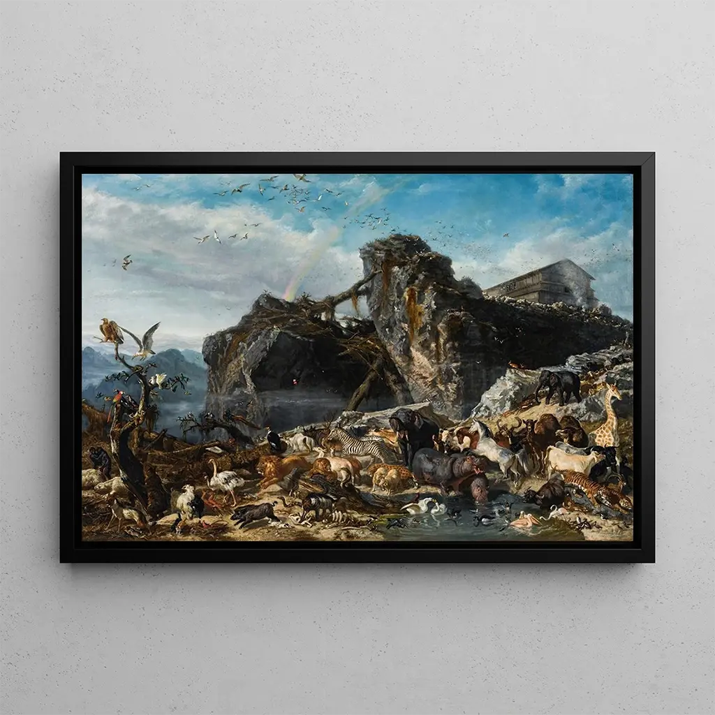 L'Arche de Noé : un récit visuel de renaissance et d'espoir L'Arche de Noé, œuvre emblématique de Filippo Palizzi, évoque un récit biblique chargé de symbolisme et de renouveau. Dans cette toile, les couleurs douces et les détails minutieux des animaux et de l'arche elle-même créent une atmosphère de sérénité et de protection. Palizzi, avec son style réaliste, parvient à capturer l'essence de ce moment crucial, où la vie est préservée face à la tempête. Les nuances de bleu et de vert, associées à des touches de lumière, renforcent l'idée d'un monde en renaissance après le déluge. Chaque élément de la composition, des animaux aux vagues tumultueuses, raconte une histoire de survie et d'espoir. Filippo Palizzi : un maître de la nature et de la vie Filippo Palizzi, né en 1818, est un peintre italien reconnu pour ses représentations de la nature et des scènes de la vie quotidienne. Influencé par le réalisme, il a su développer un style unique qui allie observation minutieuse et sensibilité artistique. L'Arche de Noé, réalisée au XIXe siècle, s'inscrit dans une période où l'art cherchait à capturer la vérité de la condition humaine et de la nature. Palizzi a souvent été inspiré par ses voyages et ses observations, ce qui lui a permis de créer des œuvres empreintes d'une profonde humanité. Son héritage artistique continue d'influencer les générations futures, célébrant la beauté et la complexité de la vie. Une acquisition décorative aux multiples atouts La reproduction de L'Arche de Noé est un choix décoratif qui s'intègre harmonieusement dans divers espaces, que ce soit un salon, un bureau ou une chambre. Sa qualité d'impression et son attention aux détails font de cette toile un ajout précieux à toute collection d'art. En choisissant cette œuvre, vous apportez non seulement une touche esthétique, mais aussi une histoire riche et inspirante dans votre intérieur. Ce tableau, avec sa représentation vibrante de la vie et de l'espoir, saura captiver vos invités et enrichir votre environnement, tout en célébrant l'art de Filippo Palizzi.