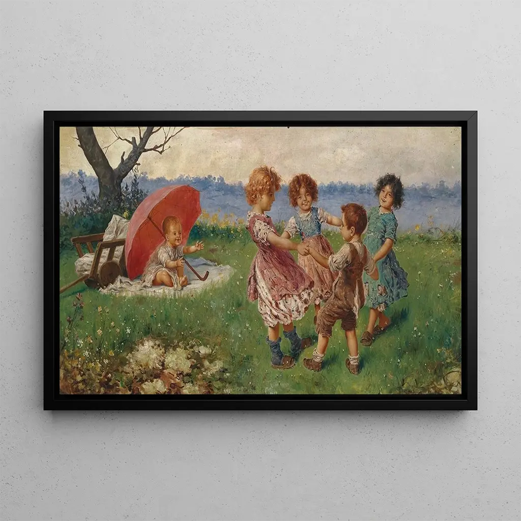 Enfants jouant : une scène de joie et d'innocence Dans la konsttryck Enfants jouant de Federico Oliva, la vivacité des couleurs et la légèreté des traits capturent l'essence même de l'enfance. Les enfants, plongés dans leurs jeux, semblent s'épanouir dans un univers où l'innocence règne en maître. La technique de l'artiste, alliant douceur et précision, crée une atmosphère chaleureuse et accueillante. Les nuances de bleu et de vert évoquent la nature, tandis que les éclats de lumière illuminent les visages joyeux des jeunes protagonistes. Cette œuvre invite à la contemplation et à la nostalgie, rappelant les moments simples et précieux de la jeunesse. Federico Oliva : un maître de la représentation enfantine Federico Oliva, artiste du XIXe siècle, est reconnu pour sa capacité à capturer la pureté de l'enfance à travers ses œuvres. Influencé par le romantisme, il s'inscrit dans une période où l'art cherche à exprimer des émotions profondes et authentiques. Ses tableaux, souvent centrés sur des thèmes de la vie quotidienne, reflètent une sensibilité particulière envers les enfants et leur monde. En tant qu'artiste, Oliva a su s'imposer par son style unique, mêlant réalisme et touches poétiques, faisant de lui une figure importante de son époque. Une acquisition décorative aux multiples atouts La konsttryck Enfants jouant constitue une pièce décorative idéale pour divers espaces de vie, que ce soit dans un salon, une chambre d'enfant ou un bureau. Sa qualité d'impression et sa fidélité à l'œuvre originale garantissent un attrait esthétique indéniable. En intégrant ce tableau dans votre décoration, vous apportez une touche de joie et de légèreté à votre intérieur. Les couleurs vives et les expressions des enfants créent une ambiance dynamique et chaleureuse, faisant de cette toile un choix parfait pour égayer n'importe quelle pièce.