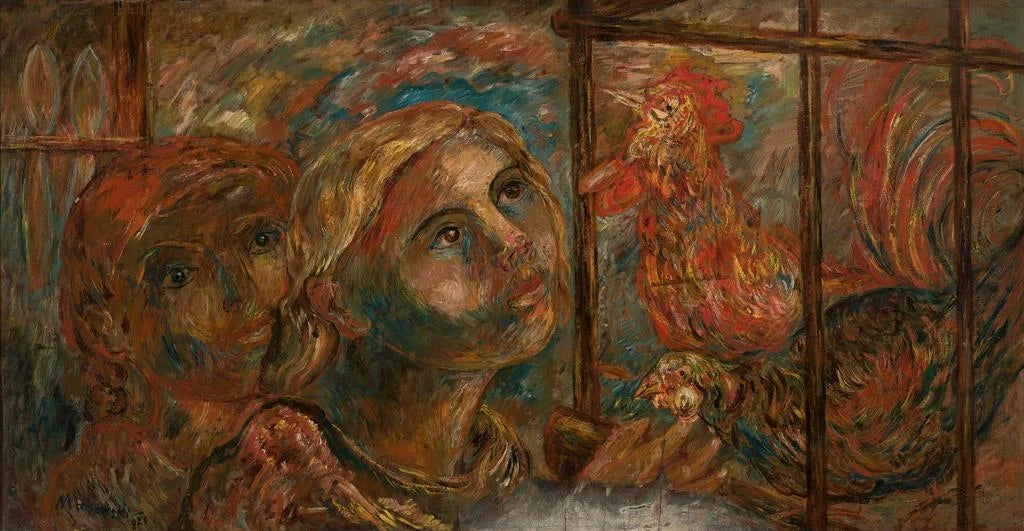 Tadeusz Makowski, peintre polonais du début du XXe siècle, est connu pour son style unique qui fusionne des éléments folkloriques avec des influences modernes. Évoluant dans un contexte historique marqué par des bouleversements, il a su traduire la vie quotidienne de son époque à travers des œuvres empreintes de nostalgie et de joie. Son travail, souvent centré sur les thèmes de l'enfance et de la nature, témoigne d'une sensibilité particulière pour les détails et les émotions humaines. Makowski a ainsi laissé une empreinte durable dans le monde de l'art, célébrant la beauté des moments simples.