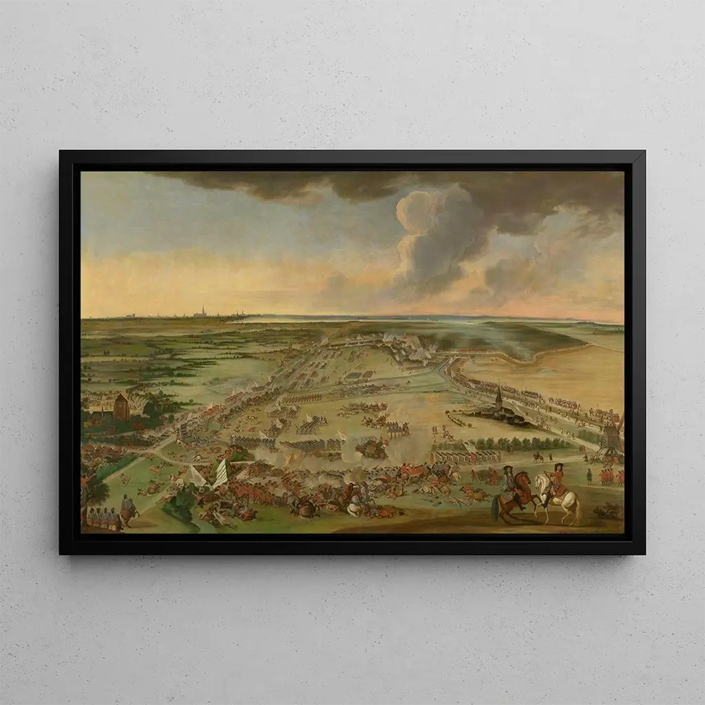 Bataille d'Ekeren : un tableau épique de la bravoure militaire La "Bataille d'Ekeren" est une œuvre qui capture l'intensité d'un affrontement militaire, illustrant la bravoure des soldats en pleine action. Constantijn Francken utilise des couleurs vives et des contrastes saisissants pour représenter le chaos et la dynamique de la bataille. Les figures sont rendues avec une grande précision, chaque mouvement et chaque expression transmettant l'urgence du combat. Cette toile, riche en détails, transporte le spectateur dans un moment historique, où l'héroïsme et le sacrifice se mêlent à la tragédie de la guerre. Constantijn Francken : un témoin de l'histoire à travers l'art Constantijn Francken, peintre flamand du XVIIe siècle, est reconnu pour ses œuvres historiques et militaires. Évoluant dans une période où l'art baroque dominait, il a su capturer des scènes de batailles avec une intensité dramatique. Influencé par les récits historiques et les événements contemporains, Francken a contribué à immortaliser des moments clés de l'histoire militaire. Sa capacité à représenter la violence et la bravoure de manière saisissante fait de lui un artiste important de son époque, dont les œuvres continuent d'inspirer et d'interroger. Une acquisition décorative aux multiples atouts La reproduction de "Bataille d'Ekeren" constitue un ajout remarquable à toute collection d'art. Que vous choisissiez de l'exposer dans un bureau, un salon ou une salle de réunion, ce tableau attire l'œil et suscite des conversations. Sa qualité de reproduction assure une fidélité aux détails et aux couleurs de l'œuvre originale, tout en apportant une touche d'histoire à votre décoration. En intégrant cette toile dans votre espace, vous offrez non seulement une œuvre d'art, mais aussi une fenêtre sur le passé, enrichissant ainsi l'atmosphère de votre intérieur.
