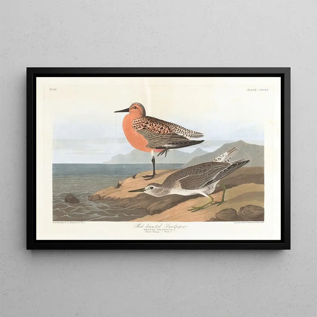 La reproduction du "Bécasseau à poitrine rousse" est un ajout charmant à toute décoration intérieure, qu'il s'agisse d'un salon, d'un bureau ou d'une chambre. Sa qualité d'impression exceptionnelle et son attrait visuel en font un choix parfait pour les amateurs d'art et de nature. Ce tableau évoque une connexion avec la faune, apportant une touche de sérénité et d'élégance à votre espace. En choisissant cette toile, vous optez pour une œuvre qui non seulement embellit votre intérieur, mais qui raconte également une histoire fascinante sur la beauté du monde naturel.