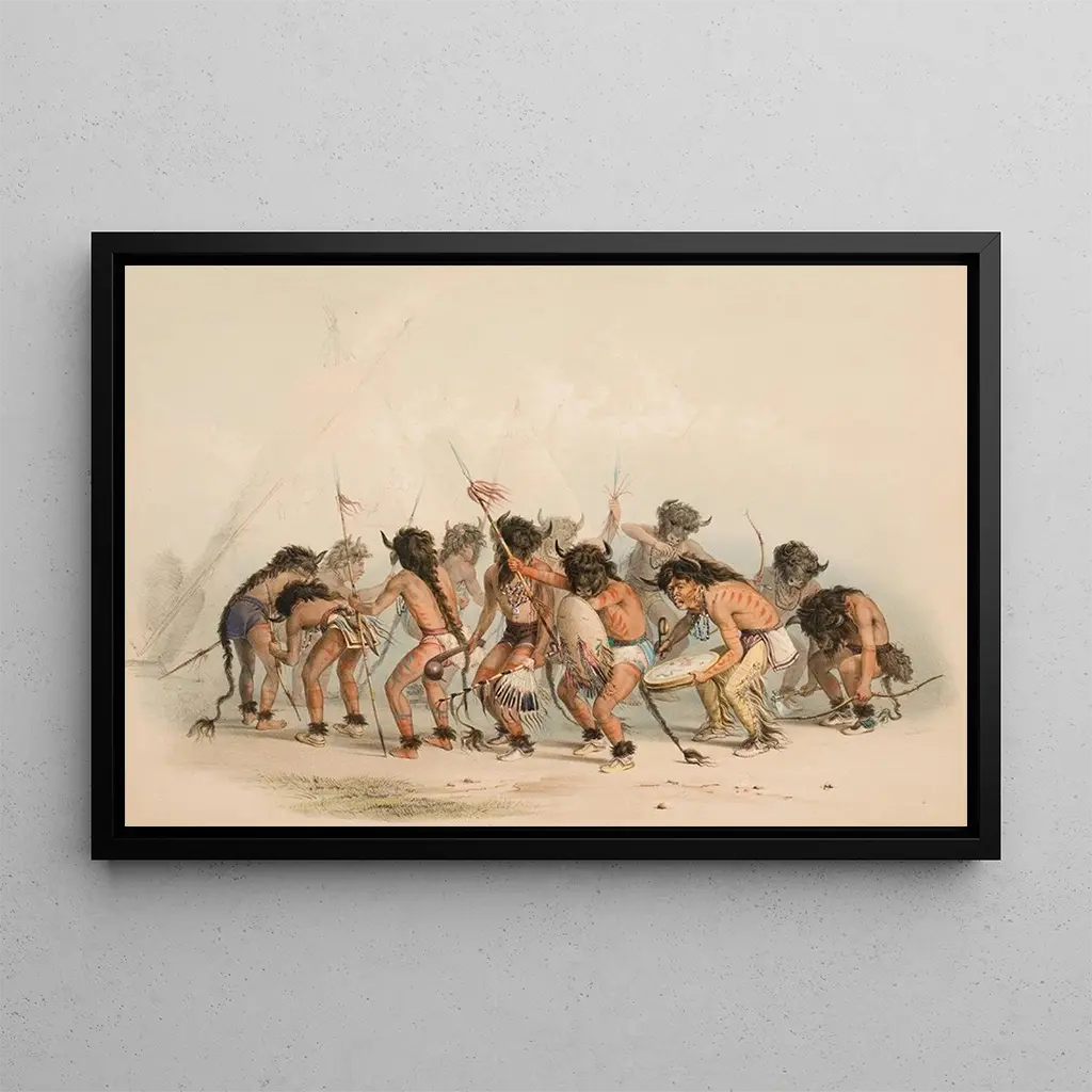 Danse des bisons : en celebration av den vilda naturen Den konsttryck av Danse des bisons av George Catlin fördjupar oss i en livfull värld där fauna och amerikansk kultur vävs samman. Detta verk, skapat med jordnära färger och ljusinslag, framkallar majestätet hos bisons i deras naturliga habitat. De dynamiska rörelserna hos djuren, fångade med oljemålningsteknik, förmedlar en påtaglig energi. Catlin, med sitt noggranna blick, lyckas bevara inte bara bisons, utan också jakten och den djupa kopplingen mellan människan och naturen. George Catlin : en pionjär inom amerikansk konst George Catlin, verksam på 1800-talet, är erkänd som en av de första konstnärerna att dokumentera de amerikanska indianernas kulturer genom sitt konstnärskap. Påverkad av sina resor över USA, utvecklade han en unik stil som förenar realism och romantik. Hans passion för att bevara traditioner och levnadssätt hos ursprungsbefolkningen är tydlig i hans verk. Catlin skapade därmed en omfattande samling konstverk som vittnar om den kulturella rikedom som tillhör de amerikanska indianerna, vilket gör honom till en central figur i amerikansk konsthistoria. En dekorativ konsttryck med många fördelar Konsttrycket av Danse des bisons är ett dekorativt föremål som kan berika alla utrymmen, vare sig det är ett vardagsrum, ett kontor eller ett sovrum. Dess utskriftskvalitet och trohet mot originalverket garanterar en oemotståndlig estetisk attraktion. Genom att integrera detta konsttryck i din inredning, tillför du en touch av historia och kultur, samtidigt som du skapar en varm och välkomnande atmosfär. Detta konsttryck är inte bara en dekorativ detalj, utan också en inbjudan till eftertanke och reflektion över den vilda naturens skönhet.