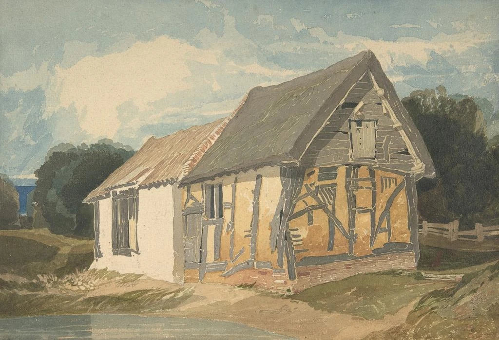 Gårdsbyggnad nära en damm - John Sell Cotman