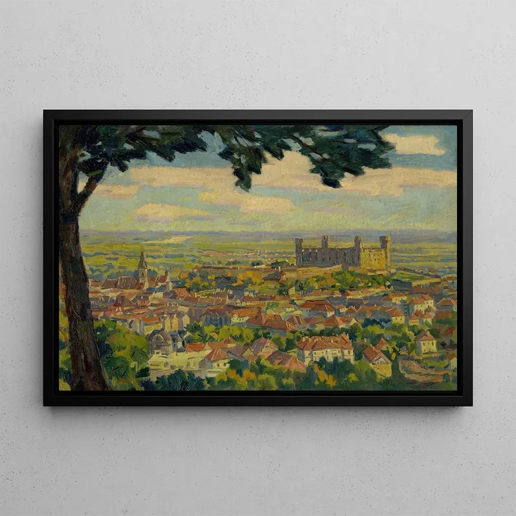 La reproduction Bratislava depuis Nový Svet invite à un voyage sensoriel au cœur de la capitale slovaque. Les nuances de bleu du ciel se mêlent aux teintes chaudes des bâtiments historiques, créant une atmosphère vibrante et dynamique. La technique de l’aquarelle, utilisée par Gustav Mahler, permet de capturer la lumière et l’ombre avec une délicatesse remarquable. Les détails architecturaux, tels que les toits et les ruelles, sont rendus avec une précision qui évoque la vie quotidienne de cette ville. L’ensemble dégage une sérénité qui incite à la contemplation, tout en révélant la richesse culturelle de Bratislava.