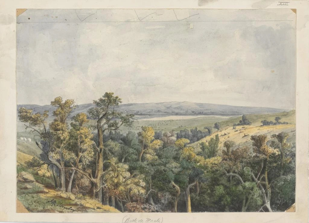 La toile "Butte de Morale" de John Mix Stanley nous plonge dans un paysage enchanteur, où la beauté de la nature s’épanouit dans une palette de couleurs vibrantes. Les nuances de vert, de bleu et de terre s’entrelacent pour créer une atmosphère à la fois sereine et dynamique. La composition, riche en détails, invite le spectateur à explorer chaque recoin du tableau, révélant des éléments de la faune et de la flore qui évoquent une connexion profonde avec la terre. L’utilisation de la lumière et des ombres accentue la profondeur de la scène, rendant l’expérience visuelle encore plus immersive.