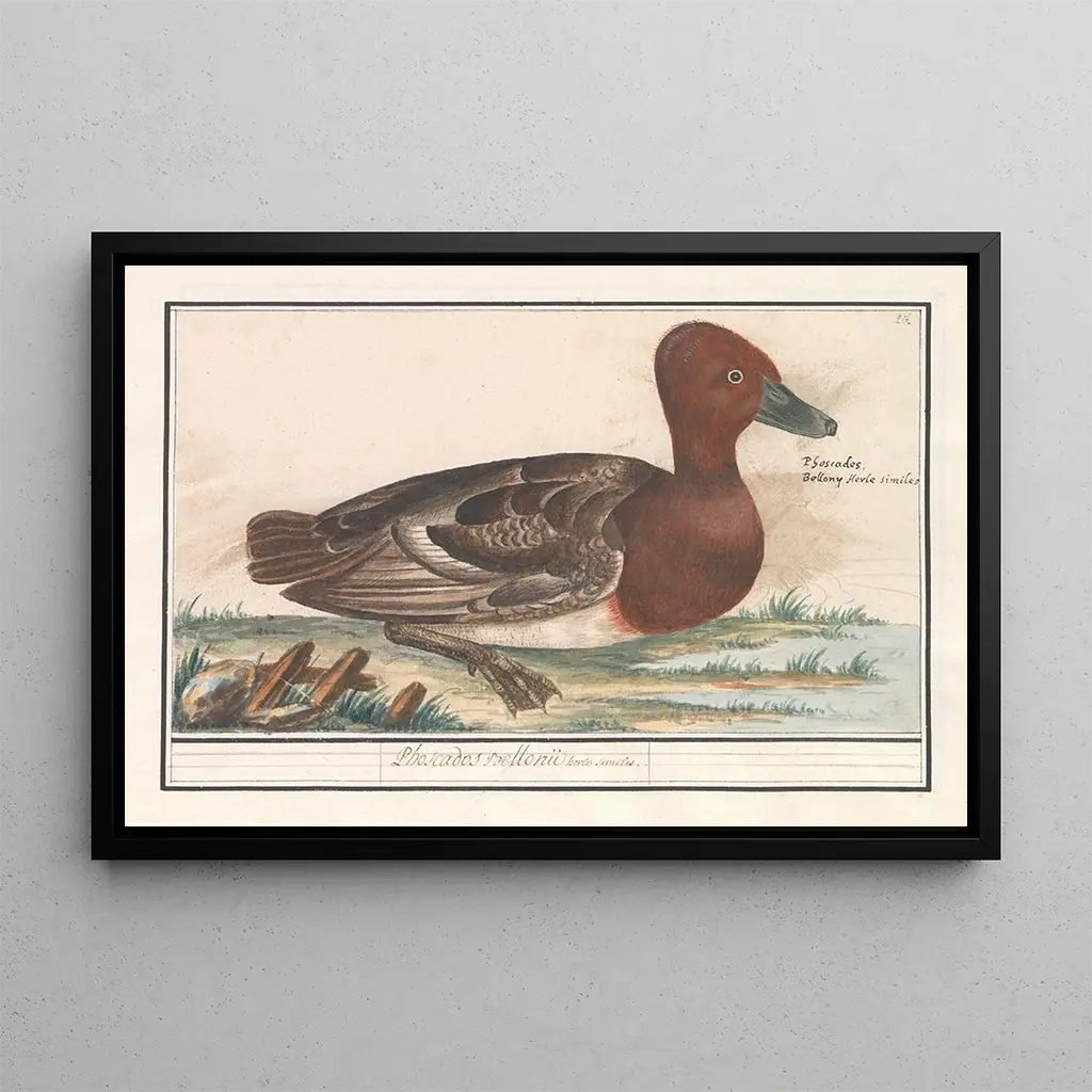 La reproduction du tableau "Canard siffleur (Anas penelope)" d'Anselmus Botius de Boodt est une ode à la beauté de la nature. Cette œuvre, réalisée au XVIIe siècle, met en avant un canard siffleur, dont les détails minutieux et les couleurs délicates capturent l'essence de cet oiseau aquatique. La palette de couleurs, dominée par des nuances de vert, de bleu et de brun, évoque les milieux naturels où évolue cette espèce. La technique de l'artiste, qui combine réalisme et finesse, permet de ressentir la légèreté du plumage et la grâce du canard dans son habitat. Cette toile invite à la contemplation de la faune et de la flore, tout en célébrant la tranquillité des paysages aquatiques.