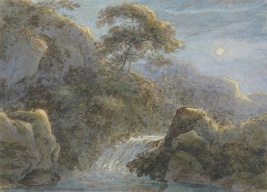 Cascade dans les montagnes au clair de lune - Franz Kobell