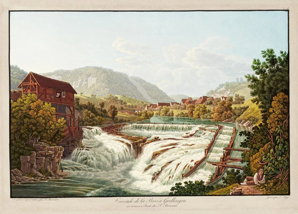La reproduction de la Cascade de la Birs à Grellingen nous plonge dans un tableau où la nature s'exprime avec éclat. Les nuances de vert et de bleu se mêlent harmonieusement, créant une atmosphère apaisante et vivifiante. La technique de l’aquarelle utilisée par Peter Birmann permet de capturer la fluidité de l'eau, tandis que les détails délicats des feuillages et des rochers ajoutent une dimension presque tactile à l'œuvre. Ce tableau invite à la contemplation, évoquant la sérénité d'un paysage naturel où le temps semble suspendu.