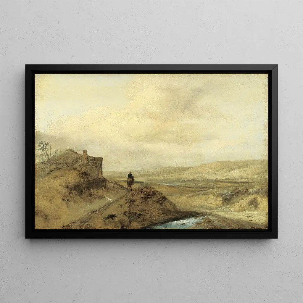 Le tableau "Cavalier dans les dunes" de Philips Wouwerman capture un moment d'évasion et d'aventure. La scène dépeint un cavalier en pleine nature, évoluant à travers des dunes dorées sous un ciel vaste et lumineux. Les détails minutieux de la monture et des paysages environnants, associés à une palette de couleurs chaudes et terreuses, créent une atmosphère dynamique et vivante. Wouwerman, maître de la peinture de genre, réussit à transmettre une sensation de mouvement et de liberté, invitant le spectateur à partager cette expérience équestre au cœur de la nature.