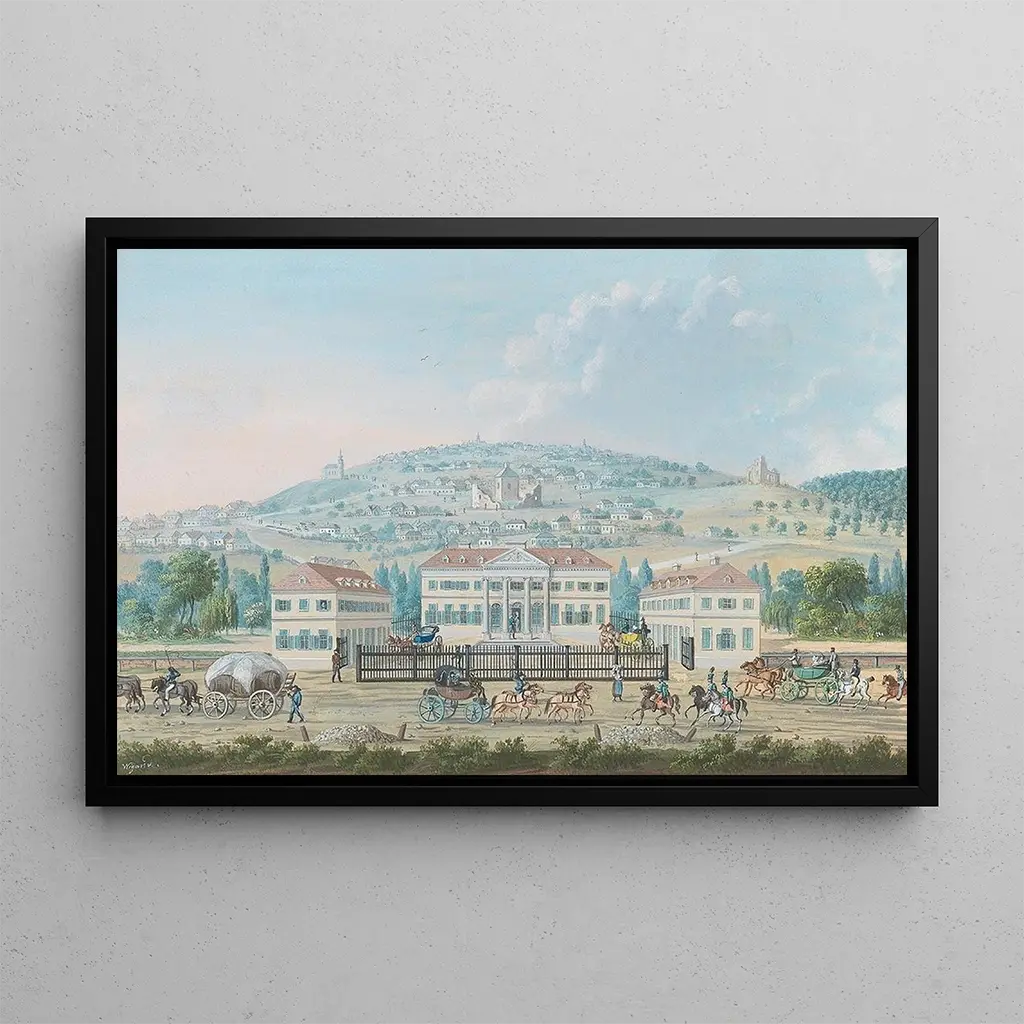 Le tableau "Château Zichy" de Balthasar Wigand nous plonge dans l'univers majestueux de l'architecture historique. Cette œuvre, riche en détails, met en avant la grandeur du château, avec ses tours élancées et ses jardins luxuriants. Les couleurs délicates, allant des verts profonds aux nuances pastel, créent une ambiance romantique et nostalgique. Wigand parvient à capturer la lumière d'une manière qui donne vie à la scène, évoquant une atmosphère de calme et de sérénité, comme si le temps s'était arrêté dans ce lieu enchanteur.