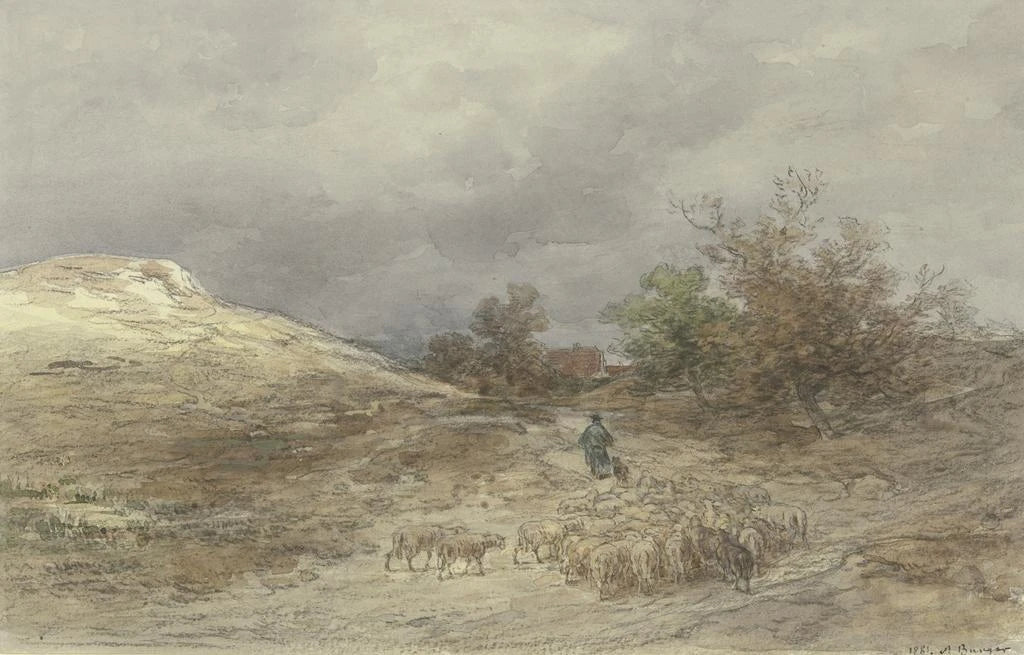Chemin creux avec troupeau de moutons près de Kelsterbach - Anton Burger
