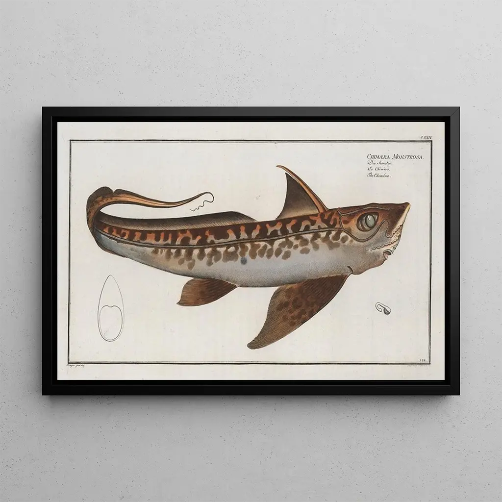 La "Chimère monstrueuse La Chimère" de Marcus Elieser Bloch est une œuvre intrigante qui représente une créature mythologique, mélangeant les caractéristiques de plusieurs animaux. Avec des détails minutieux et une palette de couleurs vives, Bloch parvient à capturer l'essence de cette bête fantastique, tout en évoquant un sentiment d'émerveillement et de curiosité. La composition dynamique, avec ses lignes fluides et ses textures riches, attire le regard et invite à explorer les mystères de la nature. Cette toile est une véritable ode à l'imaginaire, où le réel et le fantastique se rejoignent.