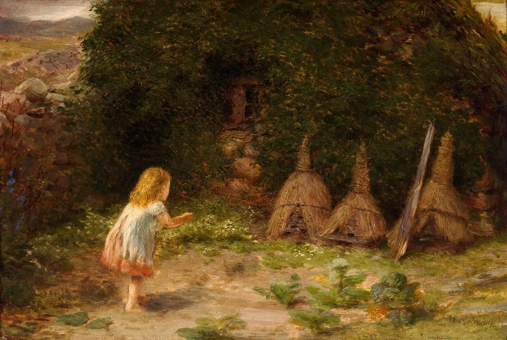 William Mulready, peintre britannique du XIXe siècle, est connu pour ses œuvres qui illustrent la vie quotidienne avec une approche réaliste et affectueuse. Influencé par le mouvement victorien, il a su capturer des scènes de la vie rurale avec une sensibilité particulière. Mulready a également été un précurseur dans l'utilisation de la lumière et de la couleur, ce qui lui a permis de créer des compositions vibrantes et dynamiques. Son œuvre, dont "Cueillir les abeilles" est un exemple emblématique, témoigne de son talent à immortaliser des instants de vie simples mais significatifs.