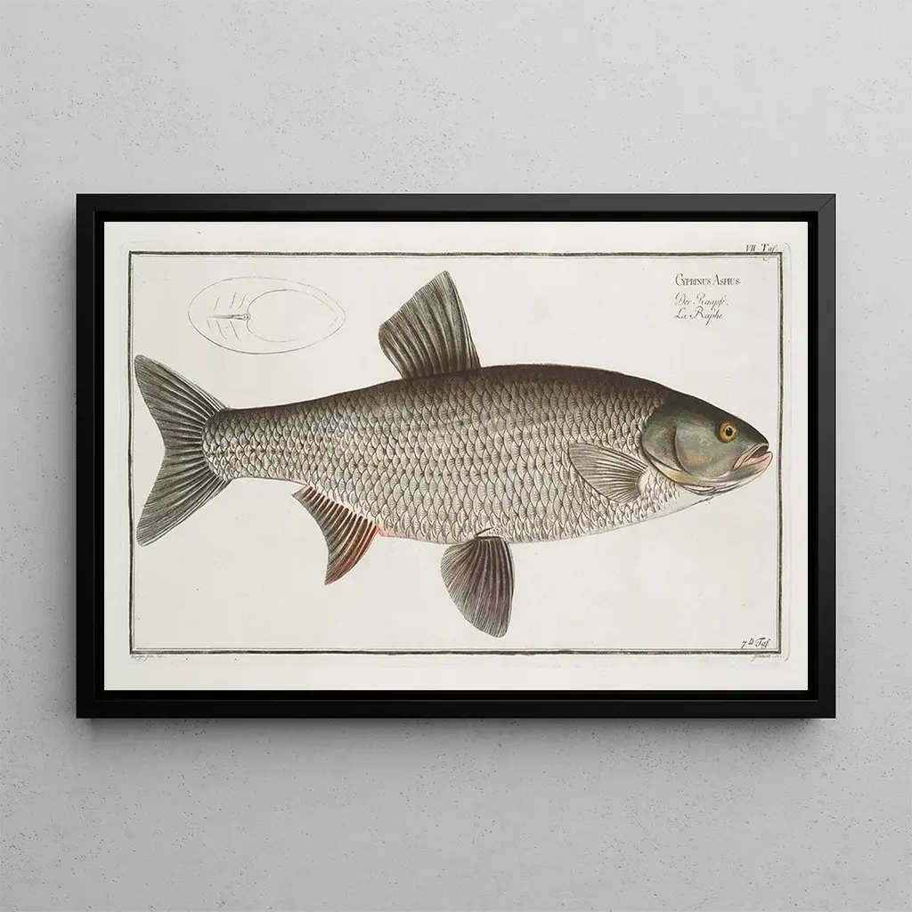 Cyprinus Aspius L'Aspius : une ode à la beauté aquatique La reproduction de Cyprinus Aspius L'Aspius, réalisée par Marcus Elieser Bloch, nous plonge dans un univers aquatique fascinant. Ce tableau, riche en détails, met en avant la majesté de l'aspic, un poisson aux reflets argentés, évoluant dans son habitat naturel. Les couleurs vives et les nuances délicates de bleu et de vert créent une atmosphère sereine et apaisante. La technique de l'artiste, alliant précision et sensibilité, permet de ressentir la fluidité de l'eau et la grâce du mouvement du poisson. Bloch parvient à capturer l'essence même de la vie aquatique, invitant le spectateur à admirer la beauté de la nature. Marcus Elieser Bloch : un pionnier de l'illustration zoologique Marcus Elieser Bloch, né en 1723, est reconnu comme l'un des premiers illustrateurs zoologiques. Travaillant principalement au XVIIIe siècle, il a su allier science et art, produisant des œuvres qui ont marqué l'histoire de l'illustration. Influencé par les découvertes scientifiques de son temps, Bloch a consacré sa vie à l'étude des poissons, réalisant des planches qui sont devenues des références dans le domaine. Son ouvrage majeur, "Ichthyologie", a permis de mieux comprendre la diversité des espèces aquatiques et a eu un impact durable sur la zoologie. L'importance de son travail réside dans sa capacité à marier précision scientifique et esthétique, faisant de ses reproductions des pièces uniques. Une acquisition décorative aux multiples atouts La reproduction de Cyprinus Aspius L'Aspius est une pièce décorative idéale pour tout intérieur, qu'il s'agisse d'un salon, d'un bureau ou d'une chambre. Sa qualité d'impression et sa fidélité aux détails originaux en font un choix parfait pour les amateurs d'art et de nature. Ce tableau apporte une touche de sérénité et d'élégance à votre décoration, tout en suscitant la curiosité et l'admiration de vos invités. Avec son attrait esthétique indéniable, cette toile est non seulement un ajout visuel, mais aussi une invitation à la contemplation de la beauté naturelle.