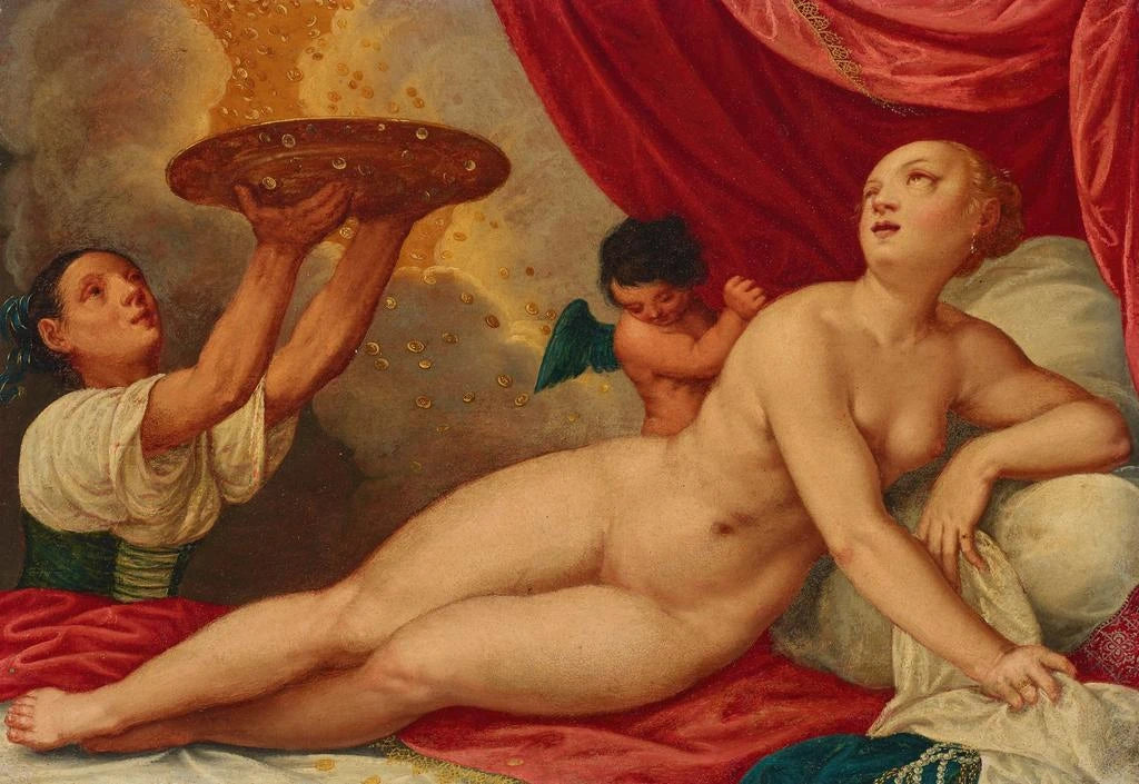 La toile "Danaé" de Johann König est une œuvre captivante qui évoque la mythologie grecque à travers une représentation sensuelle et poétique. La composition met en avant la figure de Danaé, enveloppée dans des drapés délicats, tandis que des éclats d'or illuminent la scène, symbolisant la richesse et la fertilité. Les couleurs chaudes et dorées créent une atmosphère intime et luxueuse, invitant le spectateur à plonger dans l'univers mythologique. La maîtrise technique de König se manifeste dans les détails minutieux, rendant cette œuvre à la fois vibrante et émotive.