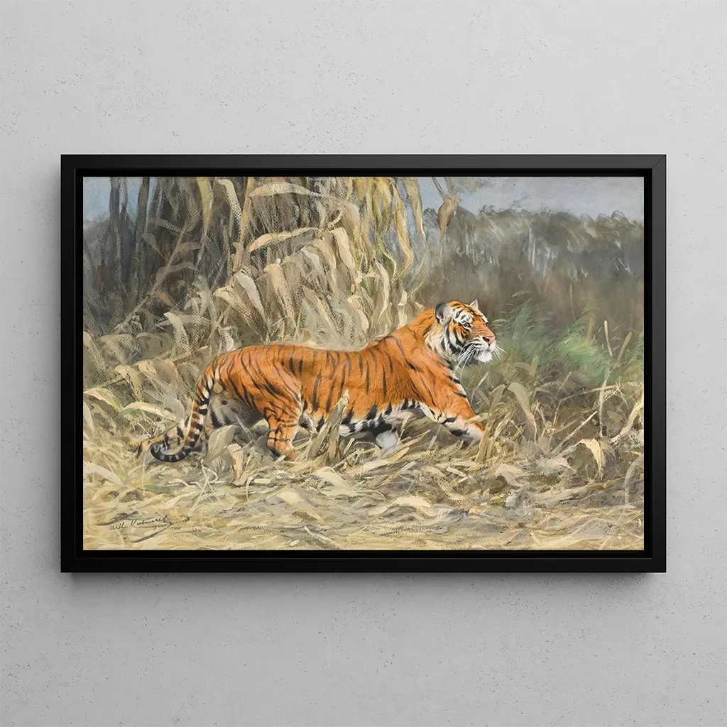 La reproduction Dans la jungle de Wilhelm Kuhnert nous plonge dans un monde vibrant de couleurs et de vie. Cette toile, riche en détails, dépeint une scène animée où la faune et la flore s’entrelacent dans une harmonie fascinante. Les teintes verdoyantes des feuillages contrastent avec les éclats de lumière qui filtrent à travers les branches, créant une atmosphère à la fois sereine et dynamique. La technique de l’artiste, qui mêle réalisme et impressionnisme, permet de ressentir la chaleur et l’humidité de cette jungle luxuriante, invitant le spectateur à explorer chaque recoin de cette scène vivante.