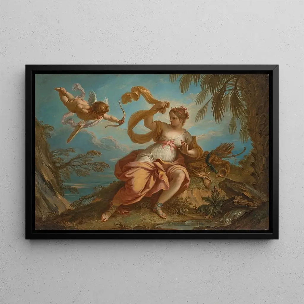 Jacques Dumont, verksam under 1700-talet, är en fransk konstnär erkänd för sin rokoko-stil, som kännetecknas av eleganta kompositioner och ett särskilt fokus på detaljer. Påverkad av tidens stora mästare, lyckades han göra sig bemärkt genom sin förmåga att kombinera mytologi och sensualitet. Hans karriär, präglad av konstverk beställda av adeln, vittnar om vikten av hans arbete inom den konstnärliga scenen under sin tid. "Diane och Cupidon" ingår i denna tradition och illustrerar den estetiska förfiningen och de mytologiska teman som dominerade de parisiska salongerna.