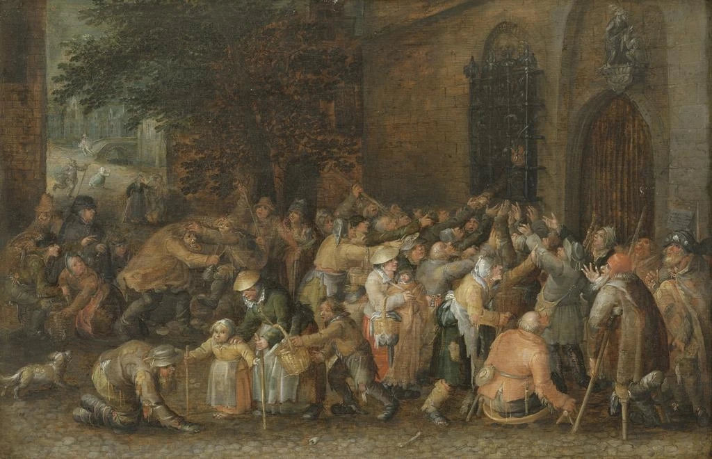 Distribution d'aumônes, œuvre de David Vinckboons, illustre avec finesse un moment de partage et de solidarité au sein d'une communauté. Les personnages, habillés de vêtements d'époque, se rassemblent autour d'une scène émotive où la charité est mise à l'honneur. Les couleurs chaudes et terreuses, typiques du XVIIe siècle, renforcent l'authenticité de la scène, tandis que la technique de la peinture à l'huile permet de rendre les expressions des visages avec une grande profondeur. Ce tableau, riche en détails narratifs, invite à réfléchir sur la nature humaine et l'importance de l'entraide.