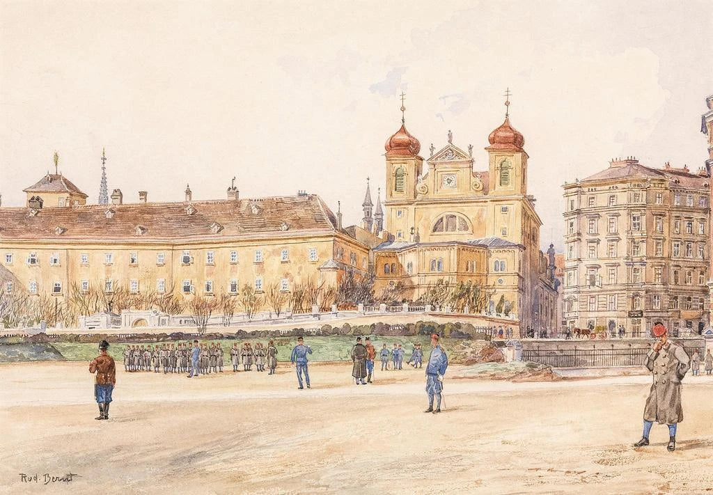 Rudolf Bernt, konstnär från början av 1900-talet, är erkänd för sin förmåga att föreviga stadslandskap och historiska monument. Utbildad i Wien, påverkades han av realismens rörelse och impressionistiska tekniker. Hans verk, ofta präglade av en noggrann uppmärksamhet på detaljer, vittnar om hans kärlek till arkitektur och historia. Bernt lyckades fånga essensen av Wien genom sina målningar, vilket gör honom till en viktig figur i sin tid. Hans förmåga att förena konst och arkitektur har lämnat ett varaktigt arv inom konstvärlden.
