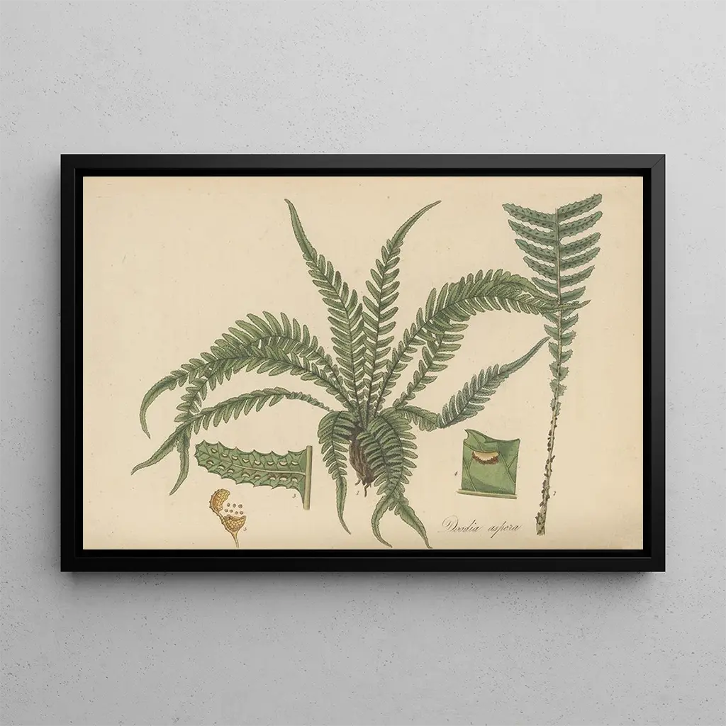Doodia Aspera, ett konsttryck av William Jackson Hooker, är en fascinerande skildring av den australiensiska floran, som fångar essensen av en natur som är både ömtålig och robust. Denna botaniska illustration framhäver de minutiösa detaljerna i de svajande bladen och betonar den organiska skönheten hos växten. De livfulla gröna nyanserna och jordnära tonerna skapar en livfull och äkta atmosfär, som inbjuder betraktaren att uppskatta den biologiska mångfaldens rikedom. Hooker, som botanisk illustratör, använder en noggrann teknik som hyllar komplexiteten och unikheten hos varje element i naturen.