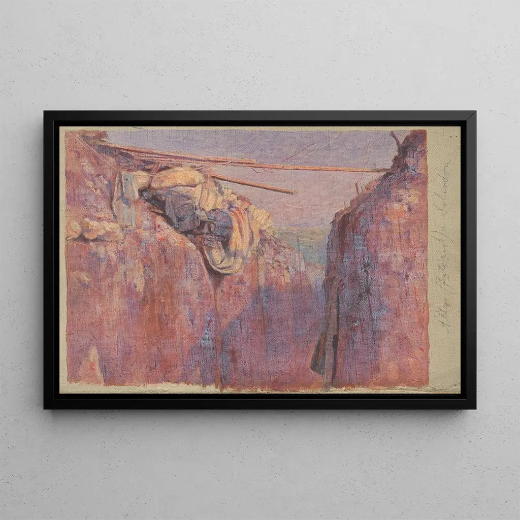 La reproduction Du front italien II de Dezider Czader nous transporte au cœur d'un paysage montagneux, où la nature s'exprime dans toute sa splendeur. Les teintes vives et les nuances de vert se mêlent harmonieusement, tandis que les touches de bleu du ciel et de l'eau apportent une profondeur saisissante à la composition. La technique de Czader, marquée par des coups de pinceau dynamiques, crée une atmosphère vivante et presque palpable. Chaque élément du tableau semble vibrer sous l'effet de la lumière, invitant le spectateur à une contemplation prolongée de ce tableau qui célèbre la beauté brute de la nature.