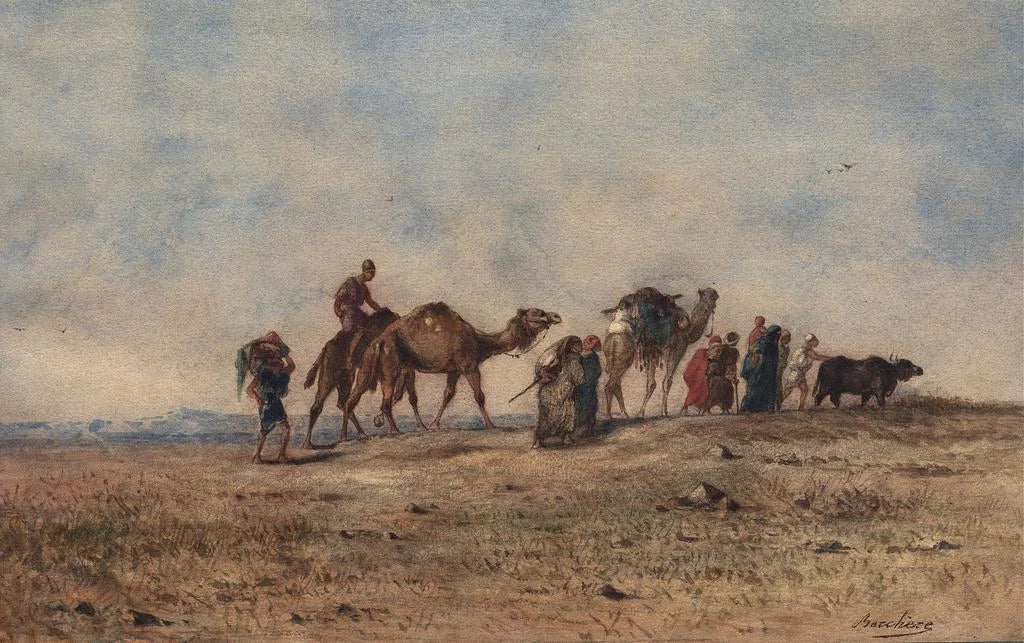 En konsttryck av en karavan i öknen: en resa till hjärtat av dynorna I "En konsttryck av en karavan i öknen" förflyttar Narcisse Berchère oss till ett torrt och mystiskt landskap. Canvastavlan, badad i varma nyanser, framkallar värmen från solnedgången som bränner himlen i orange och gyllene toner. Silhuetterna av kameler och resenärer framträder med grace mot horisonten, vilket skapar en atmosfär av lugn och eftertanke. Berchères teknik, som blandar realism och romantik, ger liv åt detta konsttryck, där varje detalj, från klädernas veck till sandkorn, tycks vibrera av en påtaglig energi. Narcisse Berchère: en mästare inom orientalisk landskapskonst Narcisse Berchère, fransk målare från 1800-talet, är erkänd för sina orientaliska konsttryck som fångar essensen av exotiska landskap. Påverkad av den orientaliserande rörelsen, har han med finhet kunnat översätta skönheten i avlägsna kulturer. Berchère reste genom Nordafrika och Mellanöstern, där han tog till sig ljus och atmosfärer som kännetecknar hans konsttryck. Hans arbete är präglat av en tid då Orienten fascinerade västvärlden, och han har lyckats etablera sig som en ikonisk figur inom denna konstström, som blandar känslighet och precision. En dekorativ konsttryck med många fördelar Konsttrycket av "En konsttryck av en karavan i öknen" är ett dekorativt föremål som kommer att försköna ditt hem, oavsett om det är i ett vardagsrum, ett kontor eller ett sovrum. Dess utskriftskvalitet och trohet mot originalverket garanterar ett imponerande estetiskt resultat. Detta konsttryck inbjuder till flykt och drömmeri, och tillför en exotisk touch till din inredning. Med sina varma färger och sin lugnande atmosfär blir denna canvastavla ett verkligt blickfång, som väcker beundran hos dina gäster och berikar ditt boendeutrymme.