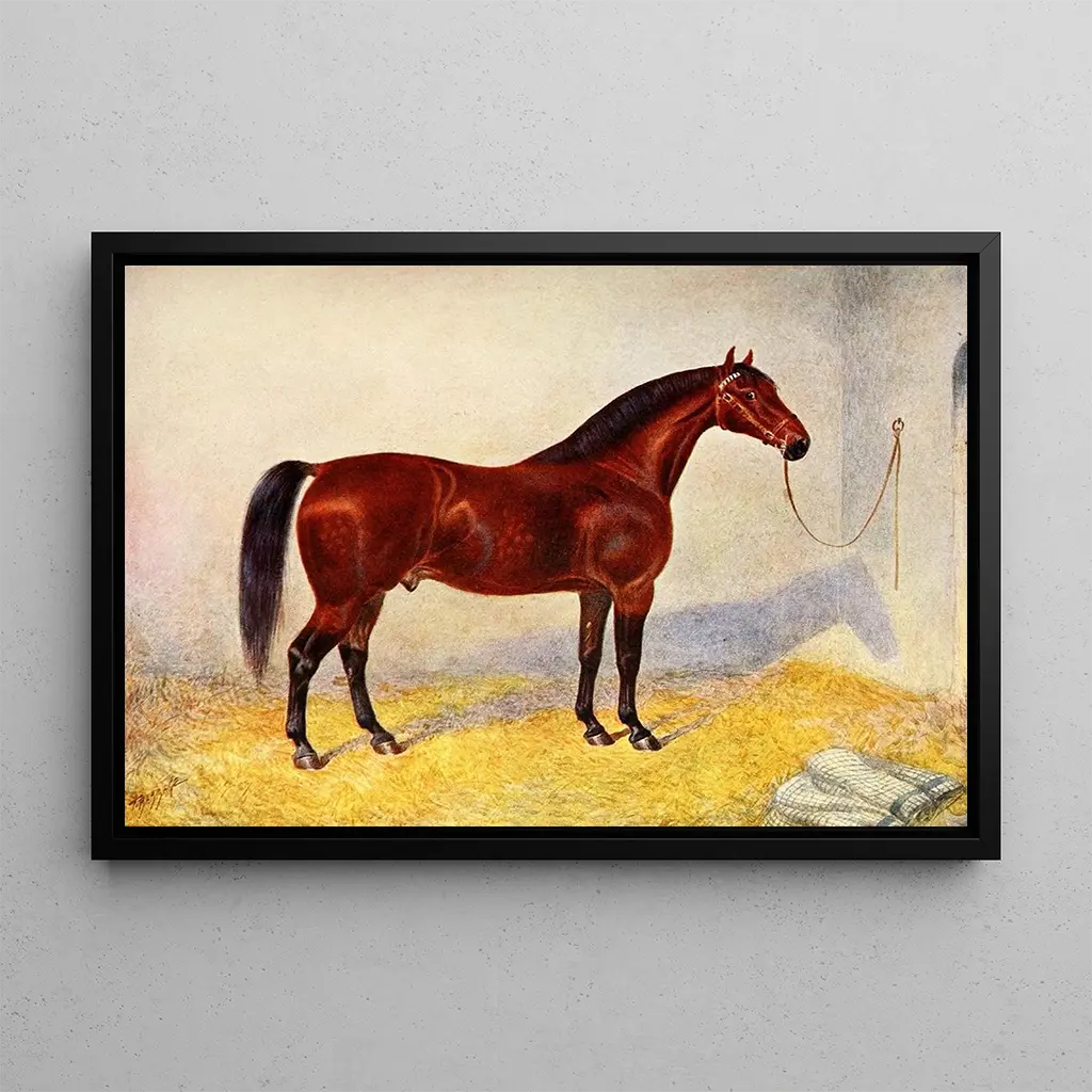 Étalon Cleveland Bay Sultan : une majesté équestre à l’honneur L’œuvre "Étalon Cleveland Bay Sultan" de Frank Babbage dépeint une scène équestre empreinte de noblesse. La toile, riche en détails, met en avant la puissance et la grâce de ce cheval, dont la robe luisante capte la lumière avec éclat. Les couleurs chaudes et terreuses évoquent un paysage pastoral, tandis que la technique de Babbage, mêlant réalisme et romantisme, confère une atmosphère presque vivante à l’animal. Le fond, subtilement flou, concentre l’attention sur le sujet principal, créant une invitation à admirer la beauté naturelle de cet étalon. Frank Babbage : un maître du réalisme animalier Frank Babbage, actif au début du XXe siècle, est reconnu pour ses représentations fidèles des animaux, en particulier des chevaux. Influencé par les traditions artistiques britanniques, il a su capturer l’essence même de ses sujets avec une précision remarquable. Sa carrière, marquée par une passion pour l’équitation et la nature, lui a permis de se faire un nom dans le milieu artistique. À une époque où le réalisme dominait, Babbage a su se démarquer par sa capacité à allier technique et émotion, faisant de lui une figure importante dans le monde de l’art animalier. Une acquisition décorative aux multiples atouts La reproduction de "Étalon Cleveland Bay Sultan" est une pièce décorative qui saura enrichir tout espace, qu'il s'agisse d'un salon, d'un bureau ou d'une chambre. Sa qualité d'impression garantit une fidélité aux couleurs et aux détails de l'œuvre originale, offrant un attrait esthétique indéniable. En intégrant ce tableau dans votre intérieur, vous apportez une touche de sophistication et de nature, tout en célébrant l'art de Frank Babbage. Cette toile devient ainsi un point focal, suscitant l'admiration et la contemplation de vos invités.
