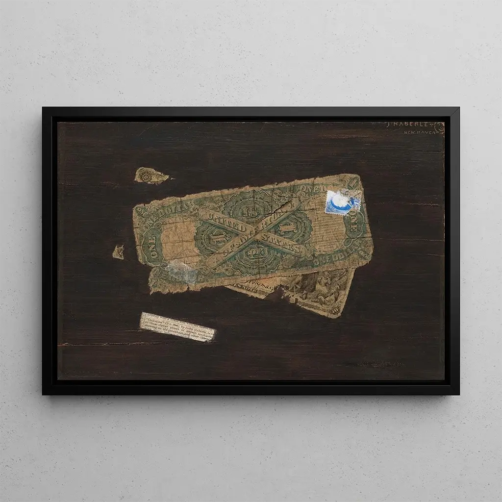 John Haberle, artiste américain actif à la fin du XIXe siècle, est reconnu pour son habileté à créer des œuvres de trompe-l'œil. Influencé par le réalisme et le mouvement impressionniste, il a su capturer des scènes de la vie quotidienne avec une précision remarquable. Sa carrière, bien que relativement courte, a laissé une empreinte indélébile dans l'histoire de l'art américain. Les thèmes de la consommation et de l'identité nationale sont récurrents dans son travail, reflétant les changements sociaux de son époque. La reproduction États-Unis est un exemple parfait de son talent, mêlant technique et critique sociale.