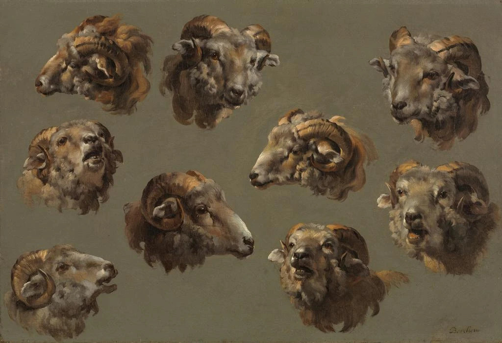 L'art animalier a toujours occupé une place importante dans l'histoire de l'art, et les Études de têtes de bélier en sont un parfait exemple. Bien que l'artiste reste inconnu, cette œuvre témoigne d'une période où la représentation des animaux était à la fois un moyen d'expression artistique et une étude scientifique. Les artistes de cette époque cherchaient à capturer la beauté et la complexité de la nature, influencés par les avancées en zoologie et en observation des comportements animaux. Ces études sont non seulement des œuvres d'art, mais aussi des témoignages de l'intérêt humain pour le monde naturel.