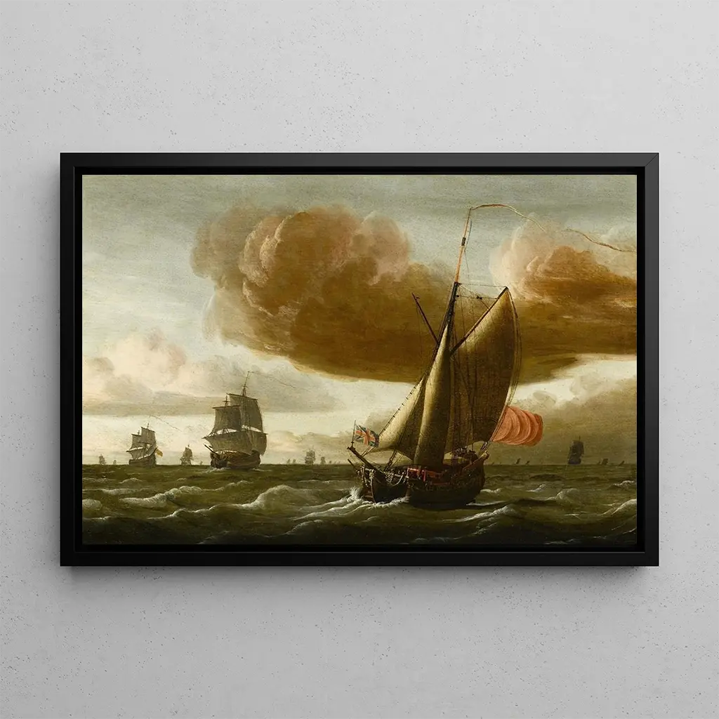 Ludolf Bakhuizen, holländsk målare från 1600-talet, är erkänd som en av mästarna inom maritim konst. Hans verk ingår i barockens stil, kännetecknad av dramatiska kompositioner och slående ljuseffekter. Påverkad av Nordsjön och sina tiders sjöresor, lyckades Bakhuizen för alltid bevara kraften och skönheten hos fartyg till sjöss. Hans tavlor, ofta beställda av köpmän och adelsmän, vittnar om vikten av maritim handel under denna tid och fascinationen för havsäventyr.