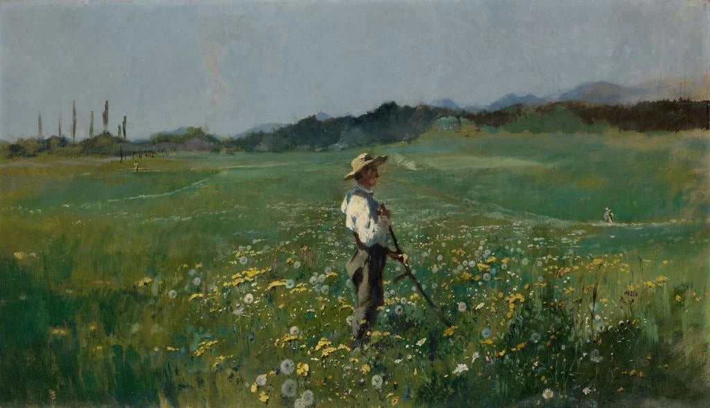 Skördeskördare i en blomstrande äng - Frank Buchser