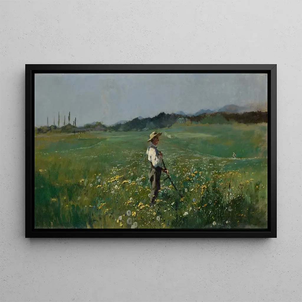 Faucheur dans un pré fleuri : une ode à la nature et au travail des champs Dans cette konsttryck intitulée "Faucheur dans un pré fleuri", l’artiste Frank Buchser capture avec une grande délicatesse la beauté du monde rural. La toile déploie une palette de couleurs vibrantes, où les verts éclatants des champs se mêlent aux touches dorées des fleurs. La technique de l’huile sur toile permet de rendre les textures de la végétation et la lumière du soleil filtrant à travers les feuilles. L’atmosphère qui se dégage de l'œuvre évoque une sérénité profonde, invitant le spectateur à se plonger dans ce moment de travail acharné, tout en célébrant la beauté de la nature environnante. Frank Buchser : un témoin de son époque et de la vie rurale Frank Buchser, peintre suisse du XIXe siècle, est connu pour ses représentations de la vie paysanne et des paysages. Influencé par le réalisme, il s'inscrit dans une période où l'art se tourne vers des sujets plus authentiques et proches du quotidien. Ses œuvres témoignent d'une sensibilité particulière pour les scènes de la vie rurale, souvent empreintes d'une nostalgie pour un monde en mutation. Buchser a également été un voyageur, ce qui lui a permis d'intégrer diverses influences dans son art, enrichissant ainsi son approche picturale. Son travail reste un précieux témoignage de la relation entre l'homme et la nature à une époque où l'industrialisation commençait à transformer les paysages. Une acquisition décorative aux multiples atouts La konsttryck de "Faucheur dans un pré fleuri" est une pièce décorative qui saura enrichir n'importe quel intérieur, que ce soit dans un salon, un bureau ou une chambre. Sa qualité de konsttryck garantit une fidélité remarquable à l'œuvre originale, permettant d'apprécier chaque détail et nuance de couleur. Ce tableau apporte une touche de fraîcheur et de sérénité à votre décoration, tout en évoquant des thèmes de travail et de nature. Son attrait esthétique en fait un choix idéal pour ceux qui souhaitent créer une ambiance chaleureuse et accueillante chez eux, tout en célébrant l'héritage artistique de Frank Buchser.