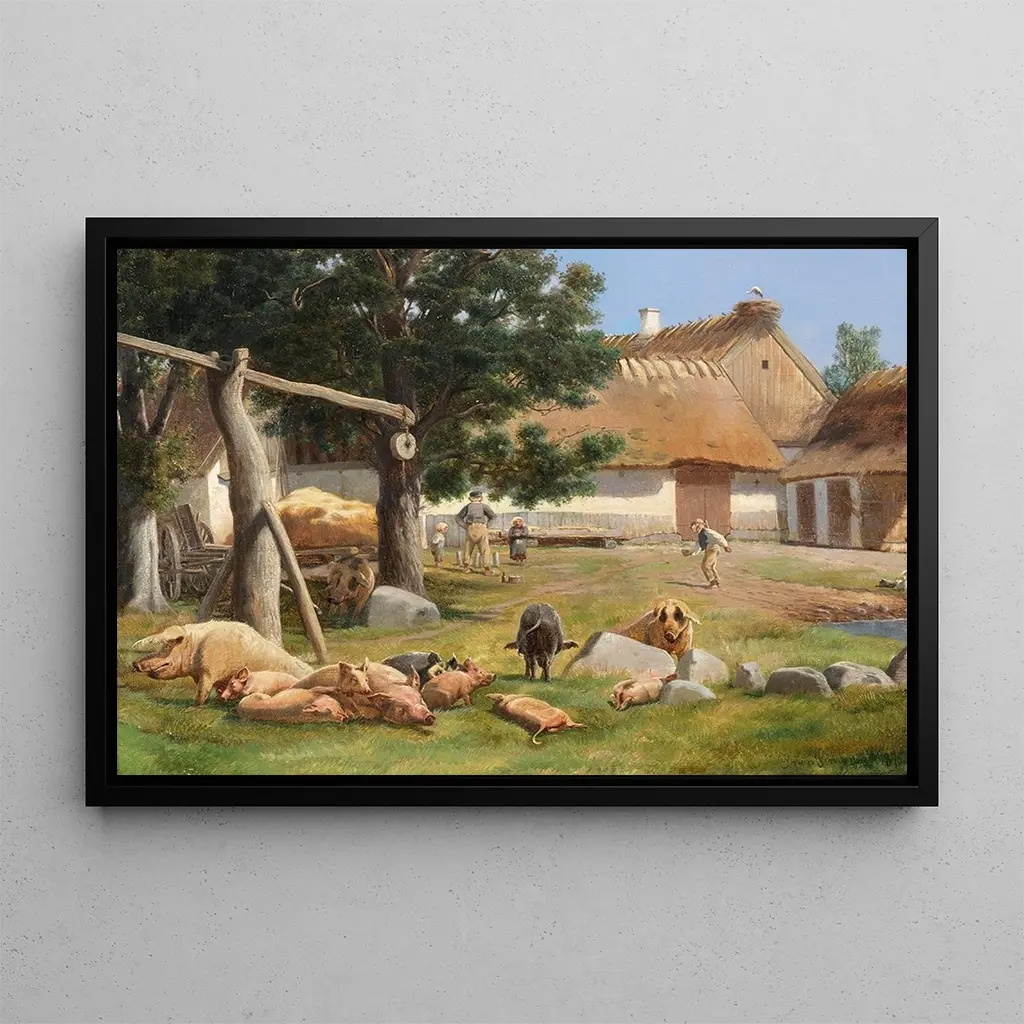 Ferme en Seeland du Nord : un tableau bucolique aux teintes apaisantes La reproduction de la Ferme en Seeland du Nord évoque un paysage serein, où la nature et l'architecture se rencontrent harmonieusement. Les couleurs douces, allant des verts éclatants aux bruns chaleureux, créent une atmosphère de tranquillité. La technique de Simon Simonsen, qui utilise des coups de pinceau délicats, permet de ressentir la texture des éléments naturels et des bâtiments. L'œuvre invite à une contemplation paisible, transportant le spectateur dans un monde rural idyllique, où le temps semble s'être arrêté. Simon Simonsen : un maître du paysage nordique Simon Simonsen, artiste danois du XIXe siècle, est reconnu pour sa capacité à capturer la beauté des paysages scandinaves. Influencé par le romantisme, il s'inscrit dans une période où l'art se tourne vers la nature et l'expression des sentiments. Ses œuvres reflètent un profond respect pour l'environnement, souvent inspirées par ses voyages à travers le Danemark et la Norvège. Simonsen a su marier tradition et innovation, laissant un héritage durable dans le monde de l'art paysager. Une acquisition décorative aux multiples atouts La reproduction de la Ferme en Seeland du Nord est une pièce décorative idéale pour divers espaces, que ce soit dans un salon, un bureau ou une chambre. Sa qualité d'impression et sa fidélité à l'œuvre originale en font un choix attrayant pour les amateurs d'art. Avec son charme rustique, ce tableau apporte une touche d'élégance et de sérénité à votre intérieur, tout en suscitant des conversations autour de l'art et de la nature.