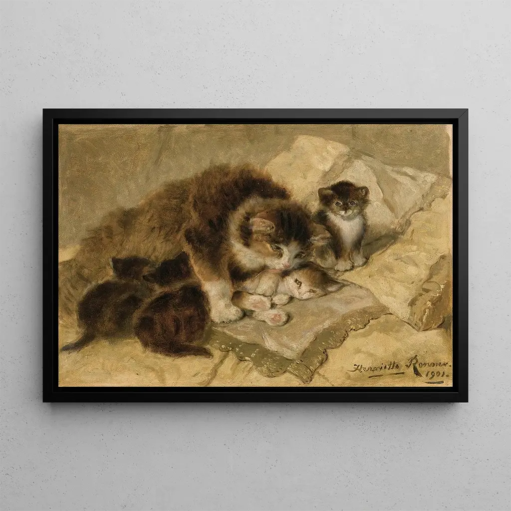 Fierté de mère : un hommage à l'amour maternel "Fierté de mère" d'Henriette Ronner-Knip est une œuvre touchante qui célèbre le lien indéfectible entre une mère et son enfant. La toile dépeint une mère caressant tendrement son petit, enveloppée dans une atmosphère douce et chaleureuse. Les couleurs pastel et les détails délicats des vêtements et des expressions créent une ambiance intime et réconfortante. La lumière douce qui baigne la scène accentue la tendresse de ce moment, faisant de cette œuvre un véritable hommage à l'amour inconditionnel. Chaque coup de pinceau semble capturer la profondeur des sentiments maternels, invitant à une contemplation émotive. Henriette Ronner-Knip : une pionnière de la peinture animalière Henriette Ronner-Knip, active au XIXe siècle, est surtout connue pour ses représentations de chats et de scènes domestiques. Élevée dans un milieu artistique, elle a été influencée par les grands maîtres de son temps et a su développer un style unique, alliant réalisme et sensibilité. Sa capacité à capturer des moments de la vie quotidienne, en particulier ceux liés à la maternité et à la nature, lui a valu une reconnaissance internationale. "Fierté de mère" illustre parfaitement son talent pour évoquer des émotions à travers des compositions simples mais puissantes, faisant d'elle une figure incontournable de son époque. Une acquisition décorative aux multiples atouts La reproduction de "Fierté de mère" est un choix idéal pour enrichir votre décoration intérieure, que ce soit dans un salon, une chambre d'enfant ou un bureau. Sa qualité de reproduction assure une fidélité remarquable aux détails de l'œuvre originale, permettant d'apprécier pleinement la délicatesse de Ronner-Knip. En ajoutant ce tableau à votre espace, vous créez une atmosphère chaleureuse et accueillante, tout en célébrant la beauté des relations familiales. Ce tableau ne se contente pas d'embellir votre intérieur, il évoque également des sentiments de tendresse et de nostalgie, faisant de chaque regard un moment de douceur.