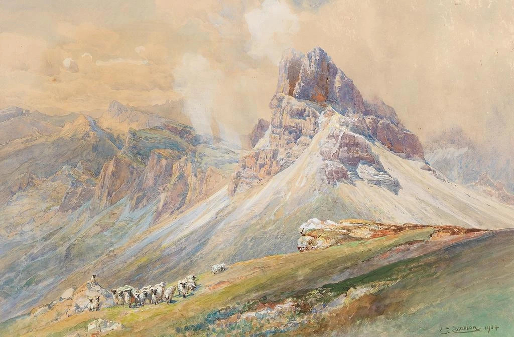 Edward Theodore Compton, född 1849, är en brittisk konstnär erkänd för sina alpina landskap. Påverkad av romantiken och impressionismen, har han utvecklat en unik stil som förenar precision och känsla. Hans resor genom Alperna har närt hans inspiration och gett honom möjlighet att återge den vilda skönheten i dessa berg. Compton var också en passionerad förespråkare för naturen, och hans verk vittnar om hans engagemang för att bevara de naturliga landskapen. Hans konstnärliga arv består, vilket gör honom till en oumbärlig figur i landskapsmåleriets historia.