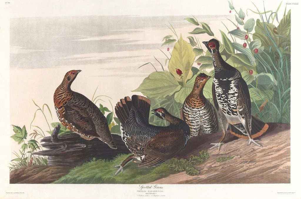 John James Audubon, naturforskare och målare från början av 1800-talet, revolutionerade fågelrepresentationen med sin vetenskapliga och konstnärliga metod. Hans verk, inklusive Gélinotte tachetée, är resultatet av noggrann observation och ett djupt kärlek till naturen. Audubon reste över hela USA och dokumenterade fågelfaunan med en oöverträffad precision, vilket gav honom en framstående plats i konst- och vetenskapshistorien. Hans arbete har inte bara berikat konstvärlden, utan också ökat allmänhetens medvetenhet om naturvård.