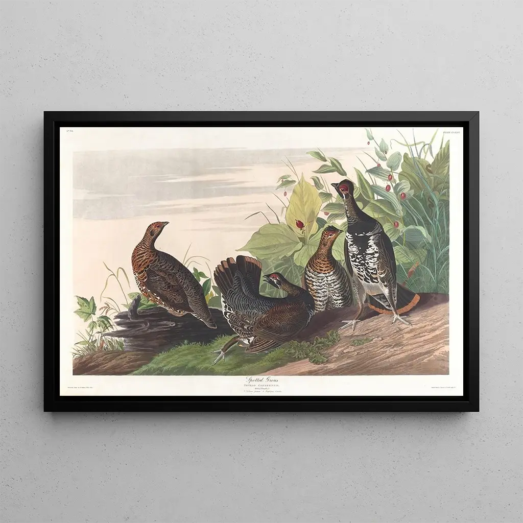 Konsttrycket av Gélinotte tachetée är ett perfekt dekorativt val för dem som vill tillföra ett inslag av natur till sitt hem. Oavsett om det är i ett vardagsrum, ett kontor eller ett sovrum, kommer detta konsttryck att fängsla uppmärksamheten och väcka beundran. Dess tryckkvalitet garanterar en perfekt trohet mot originalverkets detaljer, vilket gör det möjligt att njuta av Audubons konstnärliga skönhet. Genom att integrera detta konsttryck i din inredning tillför du ett unikt stycke som framkallar den vilda faunans prakt samtidigt som du berikar ditt boende.