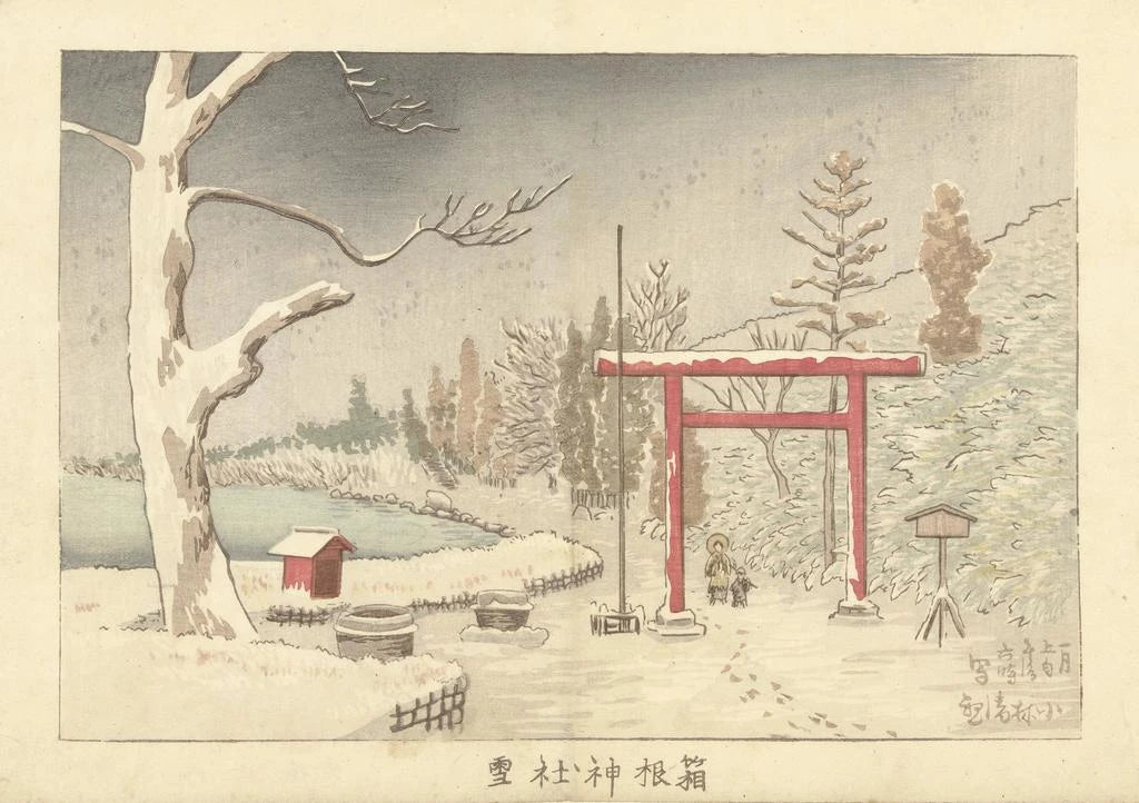 Hakones helgedom under snön - Kobayashi Kiyochika