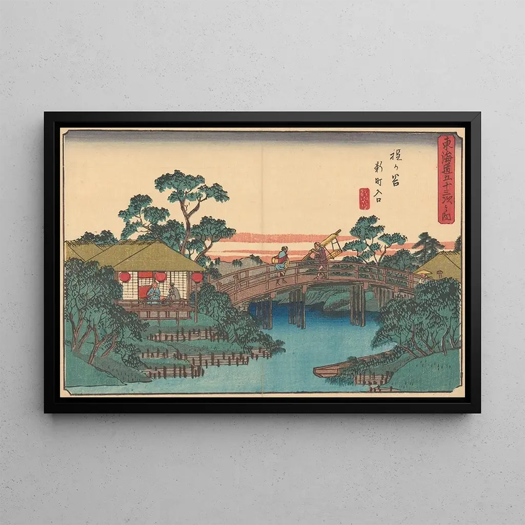 Hodogaya : ett fönster mot det traditionella Japan Den konsttryck "Hodogaya" av Andō Hiroshige fördjupar oss i ett japanskt landskap fyllt av lugn och skönhet. Detta ikoniska verk, skapat med delikata färger och flytande linjer, föreställer ett lugnt ögonblick vid vägkanten, där resenärer vilar under blommande träd. Tekniken ukiyo-e, som är karakteristisk för Hiroshige, möjliggör fångst av ljuset och atmosfären i ett exakt ögonblick, vilket skapar en emotionell koppling till betraktaren. Harmoni mellan naturens och människans element i denna scen återspeglar ett djupt respekt för naturen, typiskt för den japanska estetiken. Andō Hiroshige : mästare av det japanska konsttrycket Andō Hiroshige, verksam under 1800-talet, är en av de mest kända konstnärerna inom ukiyo-e-rörelsen, som blomstrade under Edo-perioden i Japan. Hans verk präglas av en särskild uppmärksamhet för landskap och årstider, influerad av hans resor genom landet. Hiroshige lyckades integrera element av japansk kultur samtidigt som han innovativt utformade sina kompositioner. Hans förmåga att fånga naturens flyktiga skönhet har haft ett varaktigt inflytande på konsten, både i Japan och internationellt. Hans konstnärliga arv fortsätter att inspirera många samtida konstnärer och konstälskare. En dekorativ inköp med många fördelar Konsttrycket av "Hodogaya" är ett dekorativt föremål som harmoniskt passar in i olika miljöer, oavsett om det är i ett vardagsrum, ett kontor eller ett sovrum. Dess tryckkvalitet och respekt för de ursprungliga detaljerna gör det till ett perfekt val för dem som vill berika sitt boende med en touch av asiatisk elegans. Denna canvas, med sin lugna atmosfär och lugnande färger, skapar en avkopplande och inspirerande stämning. Genom att lägga till detta konsttryck i din inredning, tar du med dig en del av kultur och historia, samtidigt som du förskönar ditt hem.
