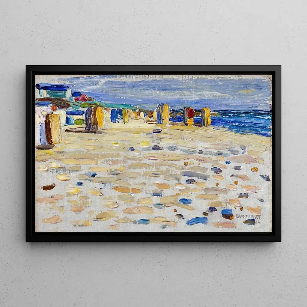 Hollande Strandkörbe : une harmonie de formes et de couleurs Dans cette œuvre vibrante, Wassily Kandinsky nous transporte sur les plages de Hollande, où les célèbres chaises de plage, les strandkörbe, se dressent comme des sculptures colorées. Les formes géométriques s'entrelacent dans une danse dynamique, tandis que les couleurs éclatantes évoquent la joie et la légèreté de l'été. La technique de l'huile sur toile permet à Kandinsky d'explorer la profondeur et la texture, créant une atmosphère à la fois apaisante et stimulante. Chaque coup de pinceau semble capturer le mouvement du vent et le murmure des vagues, invitant le spectateur à s'immerger dans cette scène estivale. Wassily Kandinsky : pionnier de l'abstraction et de la couleur Né en 1866, Wassily Kandinsky est souvent considéré comme l'un des fondateurs de l'art abstrait. Influencé par le mouvement expressionniste et les théories de la couleur, il a cherché à exprimer des émotions à travers des formes et des teintes. Son œuvre évolue au fil des années, passant de représentations figuratives à des compositions totalement abstraites. Kandinsky a également été un membre clé du Bauhaus, où il a enseigné et partagé ses idées novatrices sur l'art et le design. La reproduction de 'Hollande Strandkörbe' témoigne de son génie créatif et de sa capacité à transformer des scènes ordinaires en expériences visuelles extraordinaires. Une acquisition décorative aux multiples atouts La reproduction de 'Hollande Strandkörbe' est un choix idéal pour embellir votre intérieur, que ce soit dans un salon, un bureau ou une chambre. Son style moderne et coloré apporte une touche de fraîcheur et de dynamisme à n'importe quel espace. La qualité de l'impression garantit une fidélité remarquable aux couleurs et aux détails de l'œuvre originale, faisant de cette toile un véritable atout décoratif. En ajoutant ce tableau à votre collection, vous invitez non seulement l'art dans votre vie quotidienne, mais vous créez également un point de conversation captivant pour vos invités.