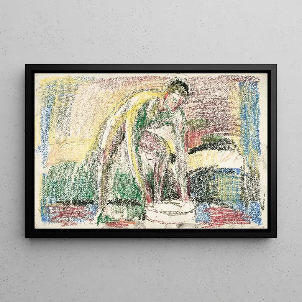 Homme nu lavant ses pieds : une exploration de la vulnérabilité humaine Dans "Homme nu lavant ses pieds", Edvard Munch nous plonge dans une scène intime et poignante, où la vulnérabilité humaine est mise en avant. La composition, centrée sur la figure masculine, est accentuée par des couleurs sombres et des contrastes saisissants qui créent une atmosphère à la fois troublante et captivante. La technique de Munch, marquée par des coups de pinceau expressifs, donne vie à l'émotion brute qui émane de cette œuvre, invitant le spectateur à réfléchir sur la condition humaine et la solitude. Edvard Munch : le précurseur de l'expressionnisme Edvard Munch, artiste norvégien emblématique de la fin du XIXe siècle et du début du XXe siècle, est souvent considéré comme le précurseur de l'expressionnisme. Son œuvre est profondément influencée par ses expériences personnelles et ses luttes intérieures, ce qui se reflète dans ses thèmes récurrents de la mort, de l'amour et de la mélancolie. "Homme nu lavant ses pieds" s'inscrit dans cette exploration de la psyché humaine, témoignant de l'importance de Munch dans l'évolution de l'art moderne et son impact sur les générations futures d'artistes. Une acquisition décorative aux multiples atouts La reproduction de "Homme nu lavant ses pieds" constitue une pièce maîtresse pour toute décoration intérieure. Que ce soit dans un salon contemporain ou un bureau artistique, cette toile apporte une profondeur émotionnelle et une réflexion sur la nature humaine. Sa qualité d'impression assure une fidélité impressionnante aux nuances et aux détails de l'œuvre originale, tout en ajoutant une touche d'élégance à votre espace. En optant pour cette reproduction, vous choisissez un art qui non seulement embellit votre environnement, mais suscite également des conversations et des réflexions profondes.