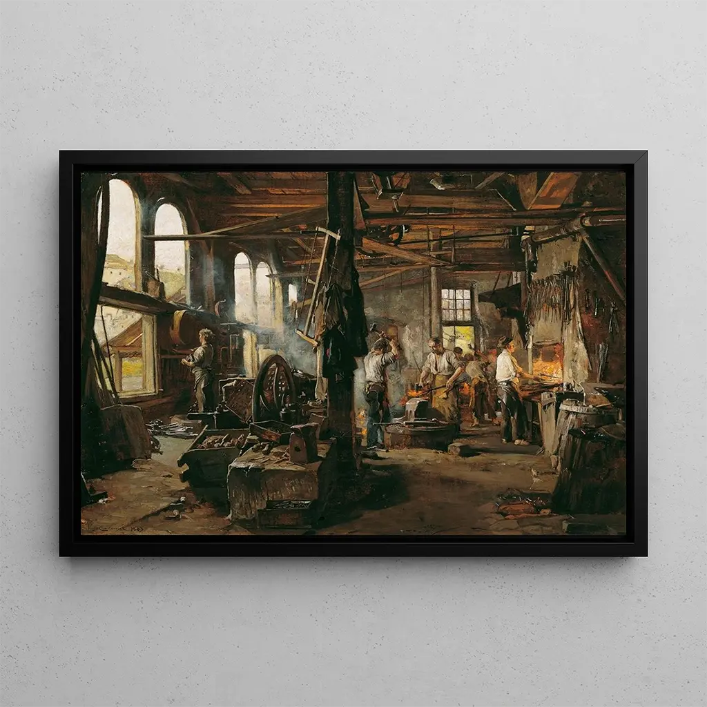 Intérieur d'une forge : une immersion dans l'artisanat traditionnel La reproduction "Intérieur d'une forge" d'Hugo Charlemont nous plonge au cœur d'un atelier où la chaleur du feu et le bruit du métal en fusion créent une ambiance unique. Les nuances de gris et de rouge, mêlées à des touches de lumière, rendent la scène vivante et palpable. Charlemont réussit à capturer l'essence de l'artisanat, montrant le forgeron à l'œuvre, concentré sur sa tâche. L'atmosphère qui se dégage de cette toile évoque la force et la détermination des artisans d'autrefois, tout en célébrant la beauté du travail manuel. C'est une invitation à apprécier les métiers traditionnels et leur savoir-faire. Hugo Charlemont : un artiste au cœur du réalisme Hugo Charlemont, né en 1849, est un peintre français reconnu pour son talent à représenter des scènes de la vie quotidienne. Formé à l'École des Beaux-Arts, il s'inscrit dans le mouvement réaliste, cherchant à dépeindre la vérité des choses. Ses œuvres, souvent inspirées par des thèmes sociaux et historiques, témoignent d'une grande sensibilité à l'égard des métiers et des traditions. Charlemont a su immortaliser des moments simples mais significatifs, comme dans "Intérieur d'une forge", où il met en lumière le travail acharné des artisans. Son héritage artistique demeure important, rappelant l'importance de la représentation du réel dans l'art. Une acquisition décorative aux multiples atouts La reproduction "Intérieur d'une forge" est une pièce décorative qui apportera du caractère à votre espace de vie. Que ce soit dans un salon, un bureau ou une cuisine, cette toile évoque un artisanat d'antan qui fascine et inspire. La qualité de la reproduction assure une fidélité aux détails de l'œuvre originale, permettant d'apprécier pleinement le talent de Charlemont. Son attrait esthétique, avec des couleurs riches et une composition dynamique, attire l'œil et enrichit l'ambiance de la pièce. En choisissant cette œuvre, vous optez pour une décoration qui allie histoire, culture et élégance, tout en célébrant le savoir-faire traditionnel.