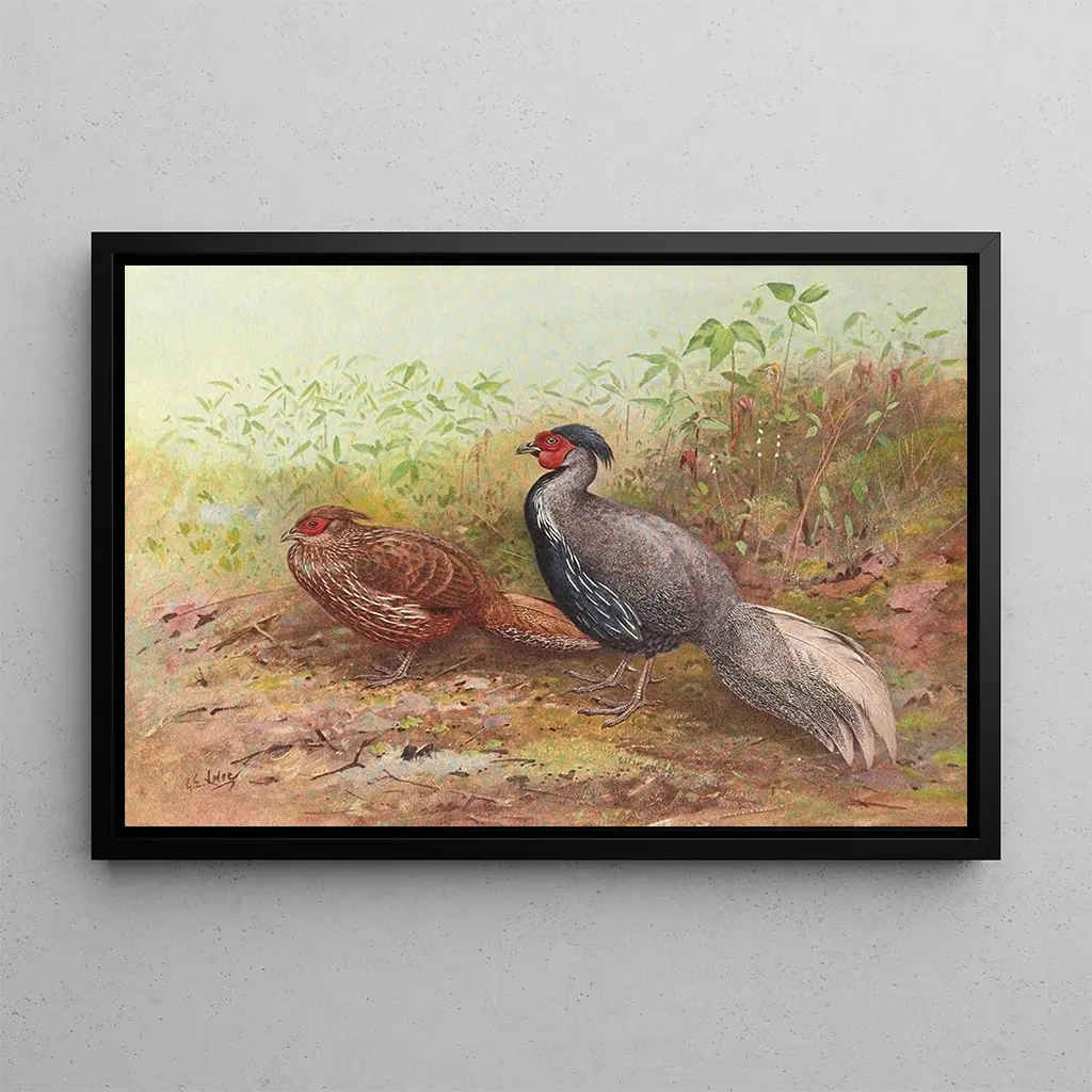 Konsttryck av Kaleege ligné av George Edward Lodge är ett verk som omedelbart fångar uppmärksamheten med sina livfulla nyanser och sitt dynamiska uttryck. Denna tavla framhäver en majestätisk fågel, vars fjädrar glänser i ljuset och skapar ett fascinerande reflekteringsspel. Lodge-tekniken, som kombinerar detaljprecision med flytande linjer, ger liv åt denna fågel i dess naturliga habitat. Atmosfären som avtecknar sig i denna målning är både lugn och förtrollande, och bjuder in betraktaren att fördjupa sig i en värld där naturen råder.