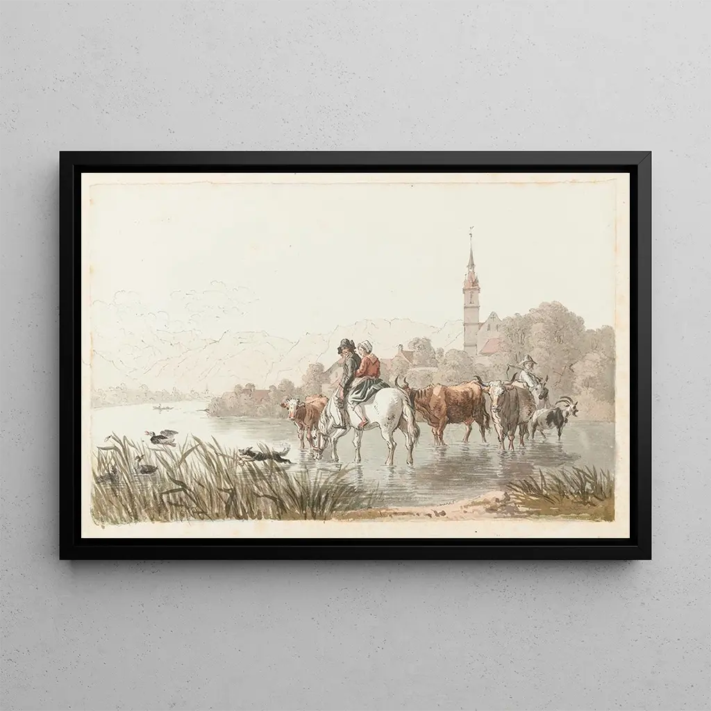 Kirchberg du Sud-Ouest : une harmonie entre nature et architecture La reproduction Kirchberg du Sud-Ouest de Johann Jakob Biedermann nous transporte dans un paysage où la nature et l'architecture se rencontrent avec grâce. Les teintes douces de vert et de bleu se mêlent harmonieusement, créant une atmosphère paisible et contemplative. La technique de l’aquarelle, avec ses nuances délicates, donne vie à chaque détail, des arbres majestueux aux bâtiments qui se fondent dans le décor. Ce tableau évoque une sérénité qui invite à la rêverie, faisant de cette œuvre un véritable poème visuel. Johann Jakob Biedermann : un maître du paysage romantique Johann Jakob Biedermann, actif au XIXe siècle, est reconnu pour ses paysages empreints de romantisme. Influencé par les grands maîtres de son époque, il a su capturer la beauté des paysages suisses avec une sensibilité unique. Son style, caractérisé par des compositions équilibrées et une palette subtile, reflète l'harmonie entre l'homme et la nature. Biedermann a joué un rôle essentiel dans le développement de la peinture de paysage en Suisse, marquant son époque par des œuvres qui continuent d'inspirer les artistes contemporains. Une acquisition décorative aux multiples atouts La reproduction Kirchberg du Sud-Ouest est une pièce décorative idéale pour enrichir votre intérieur, que ce soit dans un salon, un bureau ou une chambre. Sa qualité d'impression et sa fidélité aux couleurs originales en font un choix attrayant pour les amateurs d'art. Ce tableau apporte une touche de sérénité et d'élégance, tout en suscitant l'admiration de vos invités. Avec son attrait esthétique indéniable, cette toile est un ajout précieux à toute collection d'art, transformant votre espace en un véritable havre de paix.