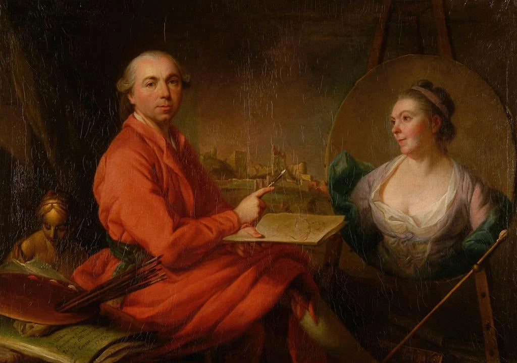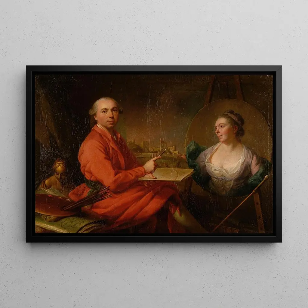 konsttryck av konstnären som målar sin fru : ett ögonblick av intimitet fångat