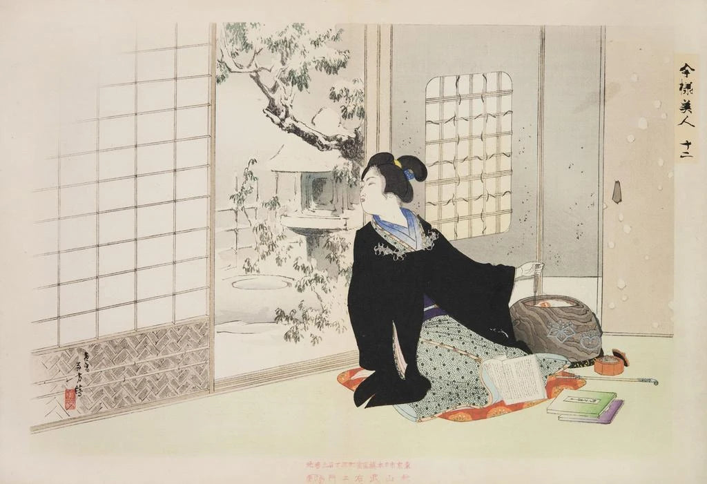 La reproduction Kyiku imay bijin fzoku zen Pl12 de Toshikata Mizuno évoque une délicatesse et une poésie visuelle qui transportent le spectateur dans un monde de sérénité. Les couleurs douces et pastel, typiques de l'estampe japonaise, se mêlent harmonieusement pour créer une atmosphère apaisante. La technique de l'ukiyo-e, avec ses lignes fluides et ses motifs raffinés, met en valeur la grâce des figures féminines représentées. Chaque détail, des vêtements aux expressions, raconte une histoire, invitant à la contemplation et à l'évasion.