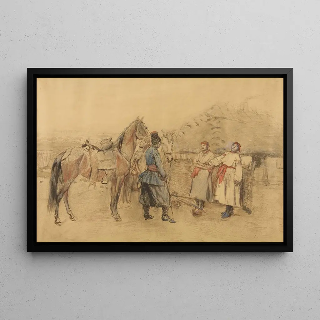 La Cour de Józef Chełmoński est une œuvre qui nous plonge dans l'animation d'une scène de la vie paysanne. Avec des couleurs chaudes et des touches de lumière, l'artiste parvient à capturer l'essence du quotidien rural. Les personnages, vêtus de costumes traditionnels, s'affairent dans une atmosphère de convivialité et de simplicité. La technique de Chełmoński, mêlant réalisme et impressionnisme, donne à cette toile une profondeur et une texture qui invitent à la contemplation. Chaque détail, des visages souriants aux animaux qui se déplacent, raconte une histoire, rendant cette reproduction particulièrement vivante.