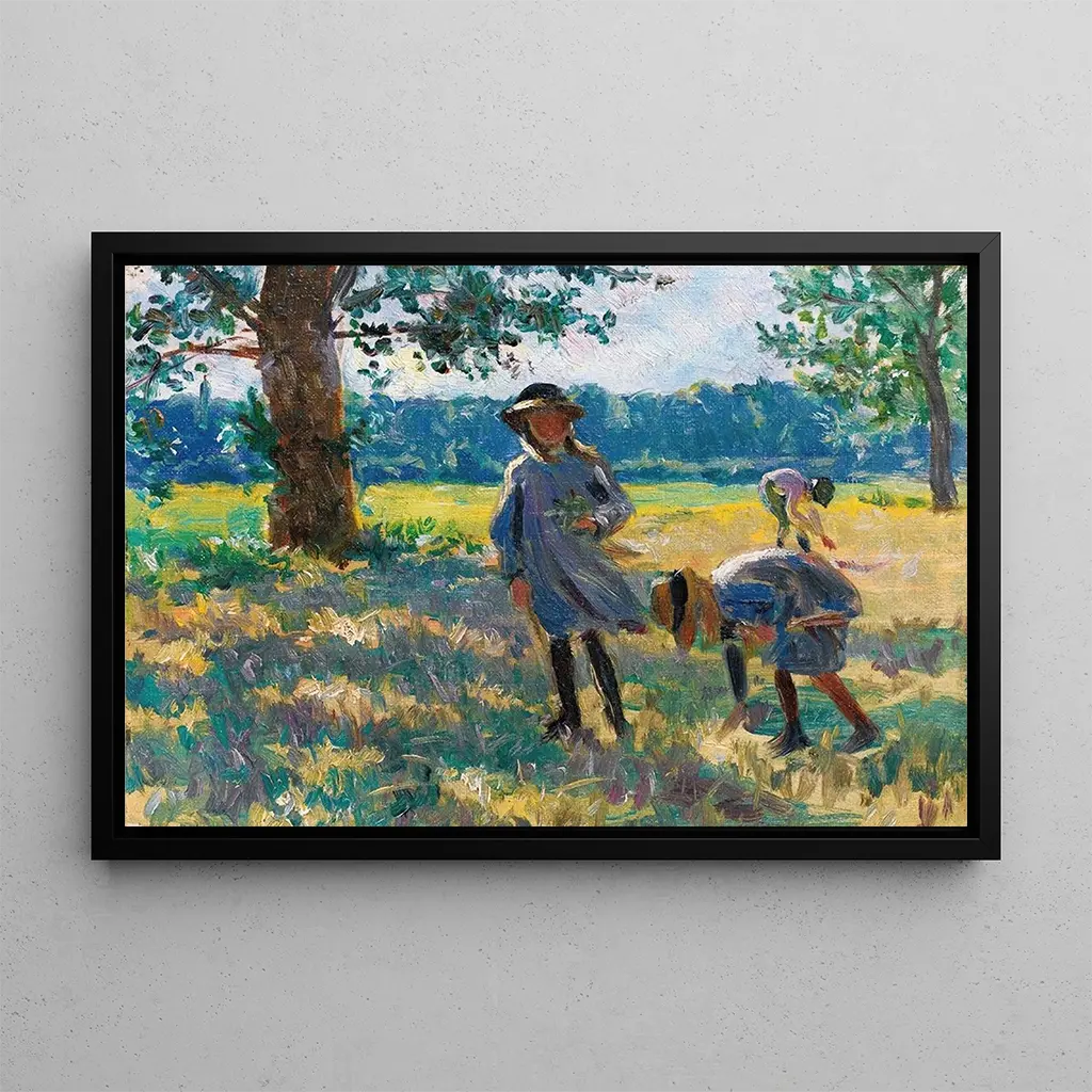 La cueillette des fleurs : un tableau vibrant de vie et de couleur "La cueillette des fleurs" d'Henri Lebasque est une œuvre qui célèbre la beauté de la nature à travers des couleurs éclatantes et une composition dynamique. Les personnages, joyeusement engagés dans la cueillette, semblent danser au rythme de la lumière qui caresse les pétales des fleurs. Les nuances pastel et les touches vives créent une atmosphère de bonheur et de légèreté, invitant le spectateur à partager ce moment de communion avec la nature. La technique impressionniste de Lebasque, avec ses coups de pinceau fluides, donne vie à la scène, transformant un simple acte en une véritable célébration de la vie. Henri Lebasque : un peintre de l'impressionnisme français Henri Lebasque, figure emblématique de l'impressionnisme français, a su capturer l'essence de la vie quotidienne à travers ses œuvres. Né en 1865, il a été influencé par des artistes tels que Monet et Renoir, intégrant leur sensibilité à la lumière et à la couleur dans son propre travail. Actif principalement à la fin du XIXe et au début du XXe siècle, Lebasque a exploré des thèmes tels que la nature, les paysages et les scènes de la vie familiale, tout en développant un style unique qui lui est propre. Son héritage artistique demeure vivant, inspirant de nouvelles générations d'artistes. Une acquisition décorative aux multiples atouts La reproduction de "La cueillette des fleurs" est un choix décoratif idéal pour apporter une touche de fraîcheur et de gaieté à votre intérieur. Que ce soit dans un salon, une salle à manger ou un bureau, ce tableau illuminera l'espace de sa palette colorée et de son ambiance joyeuse. La qualité d'impression garantit une fidélité exceptionnelle aux détails de l'œuvre originale, permettant d'apprécier pleinement le talent d'Henri Lebasque. En intégrant cette toile dans votre décoration, vous offrez à votre environnement une note artistique et vivante qui ne manquera pas d'éveiller les sens et de susciter des conversations.